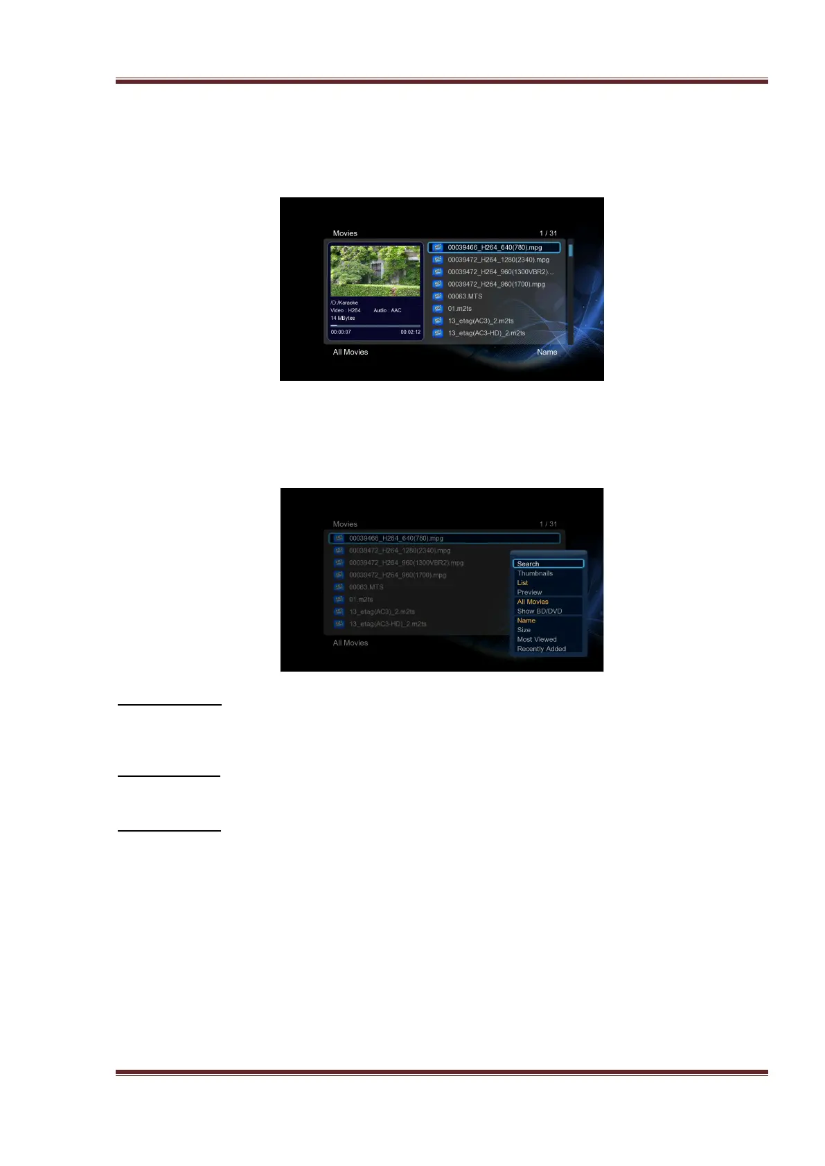 Enter into movie/photo/music/files manager interface, only supported files will be displayed.