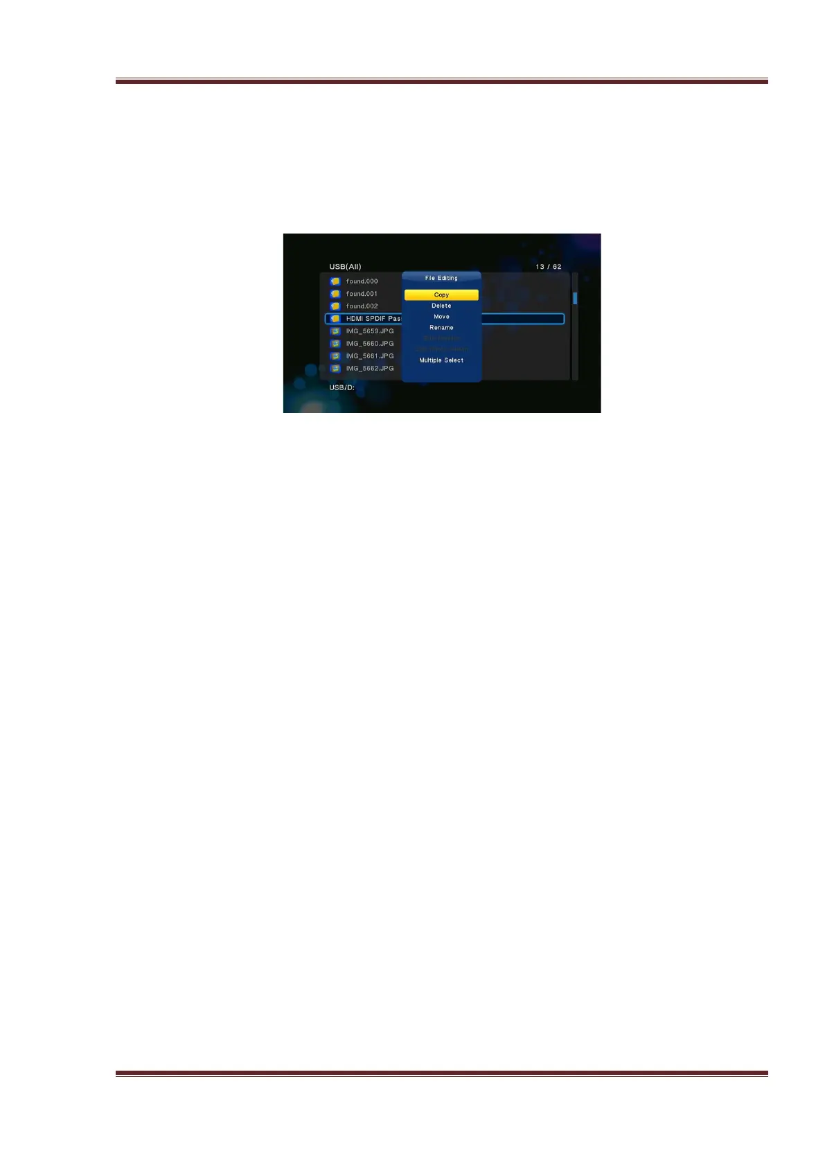 If the player is working with an internal HDD and USB HDD or USB Flash Disk, then press
