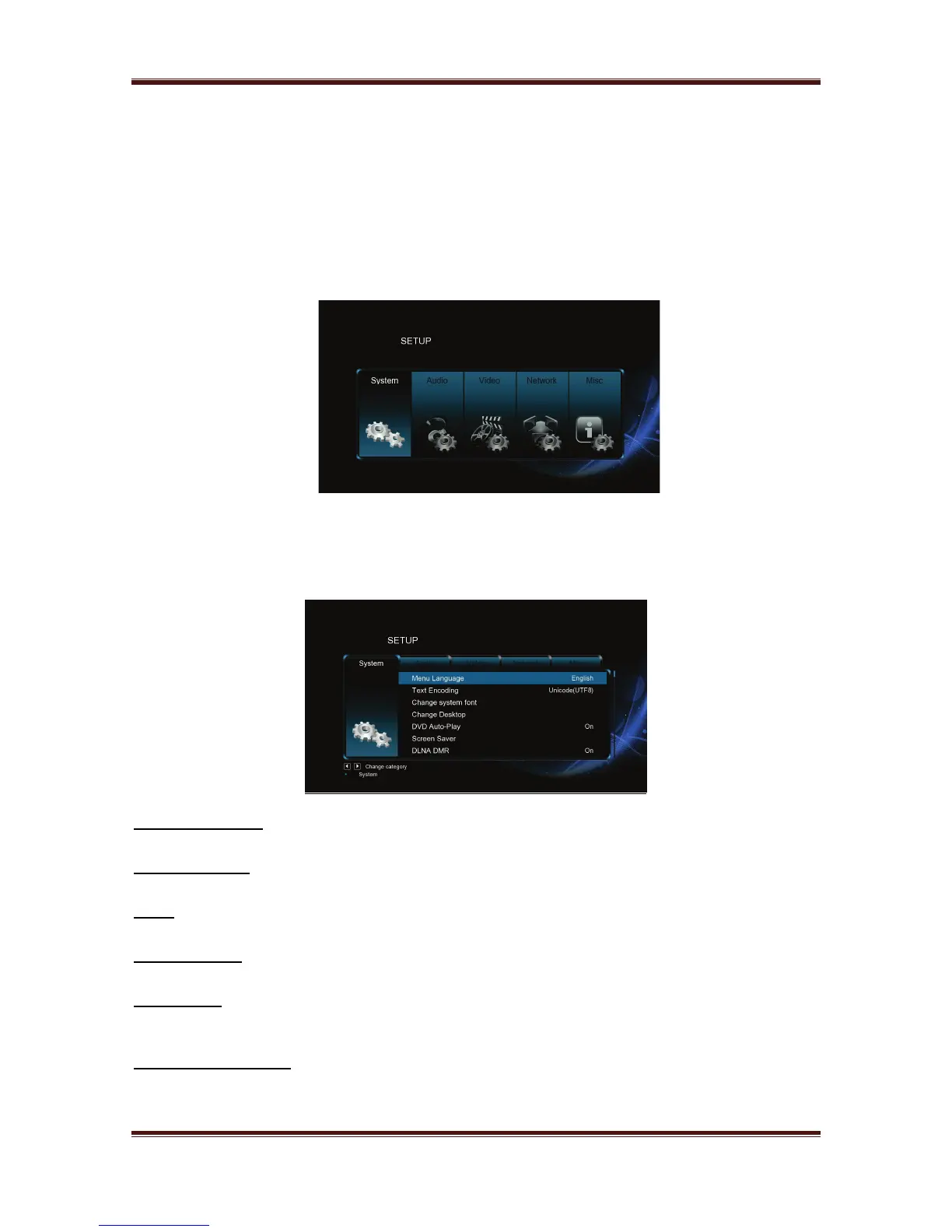 The Setup menu allows you to personalize and configure the preferences for your player.