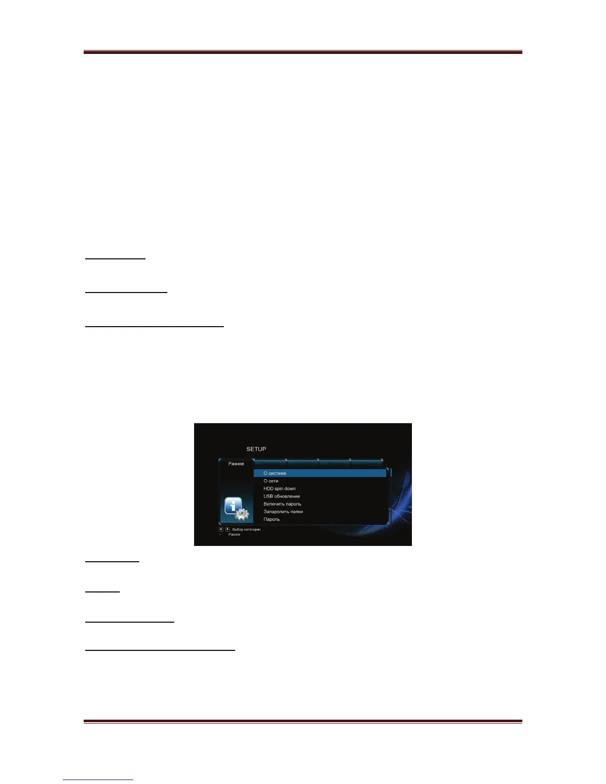 - Информация о системе, версии ПО и компонентах плеера.