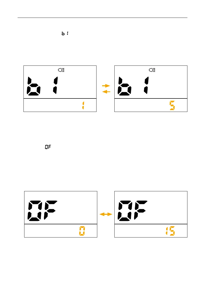 Press the + / - button to change the brightness of the headlight, from 1 to 5.