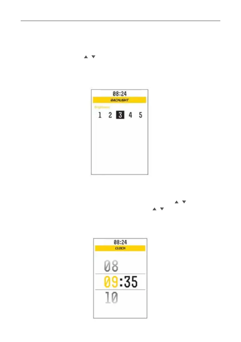 is the brightest level. Briey press / to select the backlight level, press M to conrm the