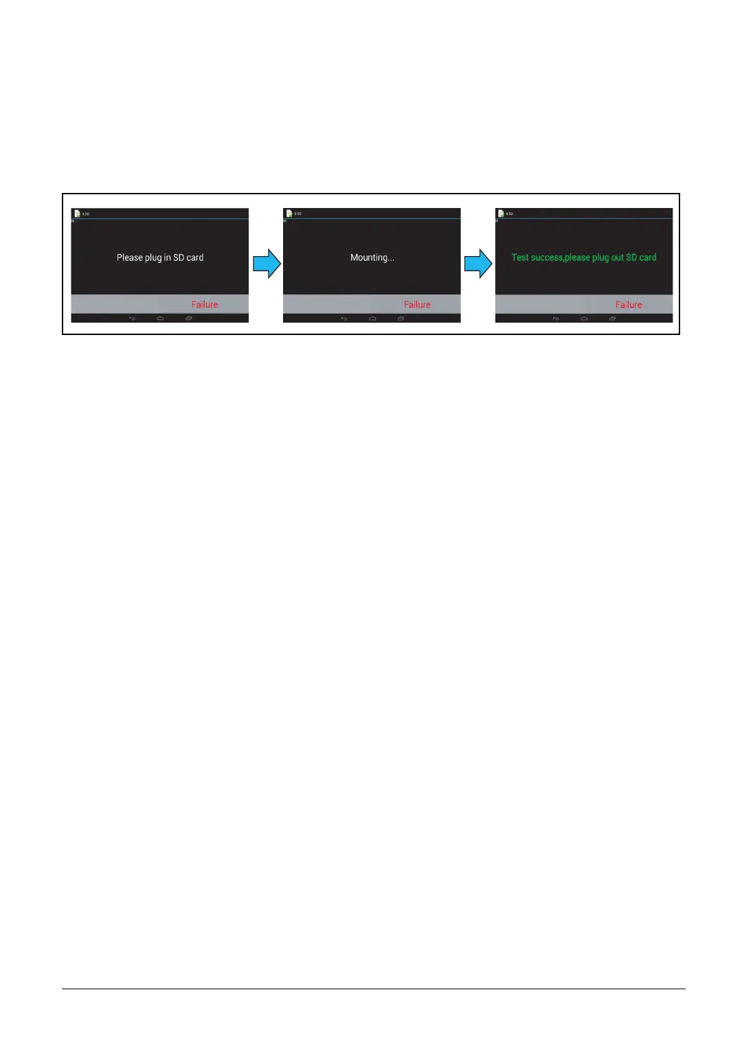 If the SD card read-write capability is successful, a message appears on the screen and the test