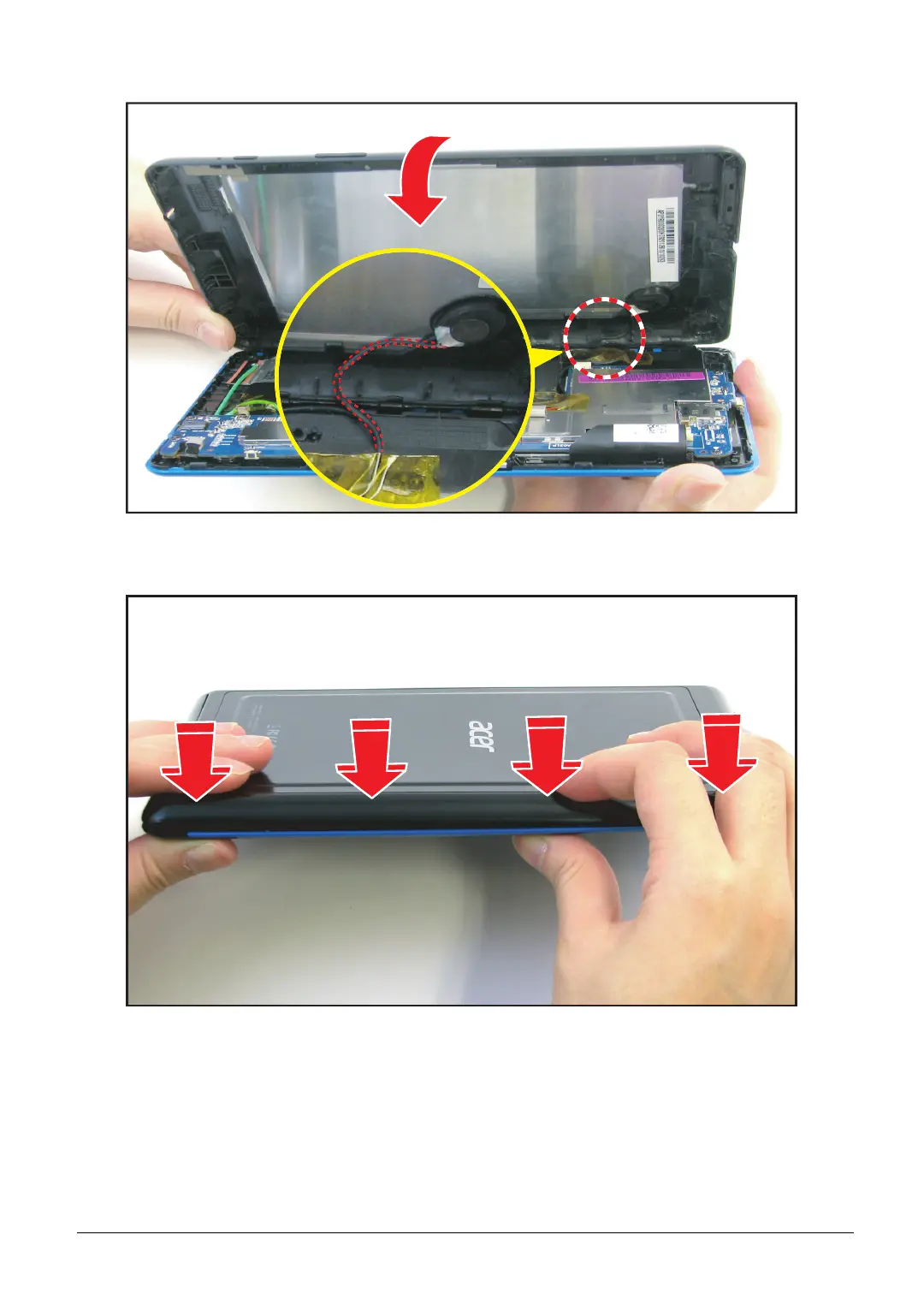 5. Route the speaker cable to hold it in place as the lower case is attached to the bezel.