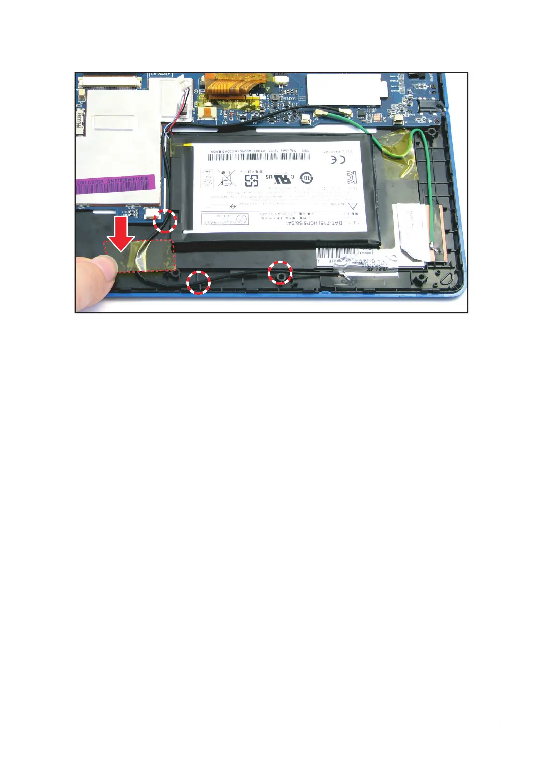 3. Route the WLAN antenna cable through the guides and then attach the protective tape to
