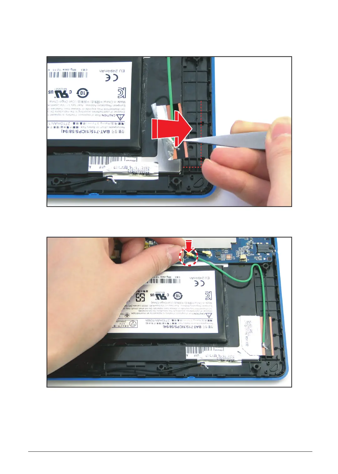 1. Using the tweezers, align and install the GPS antenna to the antenna slot on the bezel.