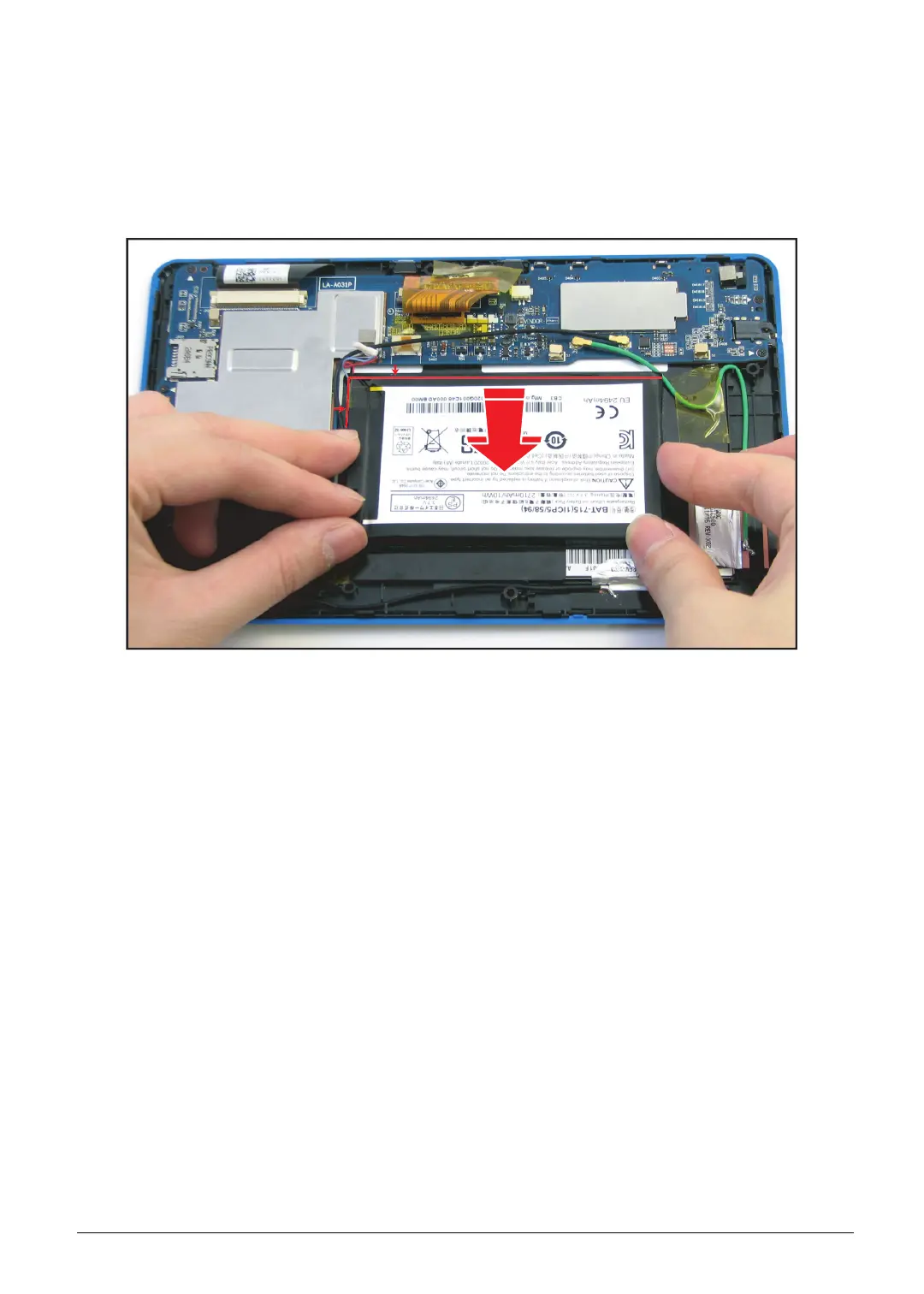 2. Peel off the sheet covering the adhesives underneath the battery.