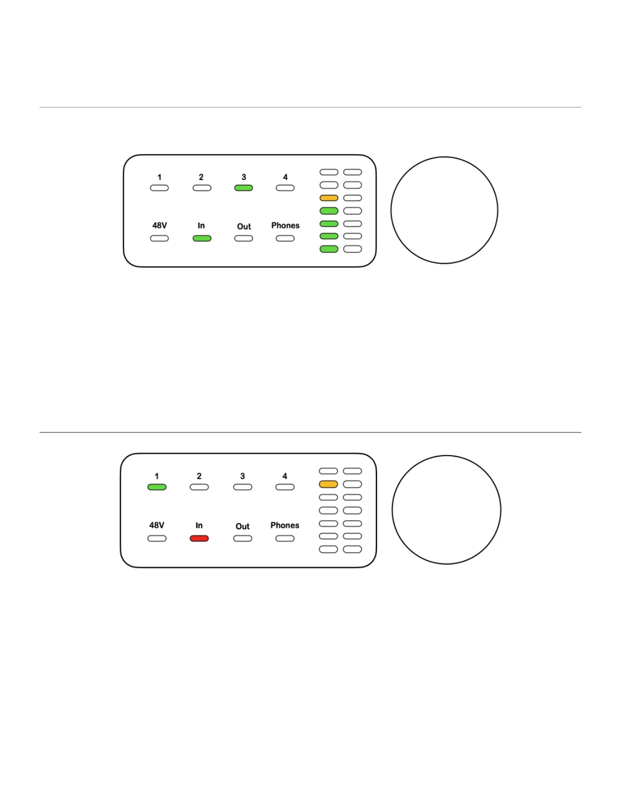 green in the top row, turn the circular encoder to the right clockwise to increase gain level. Turn the