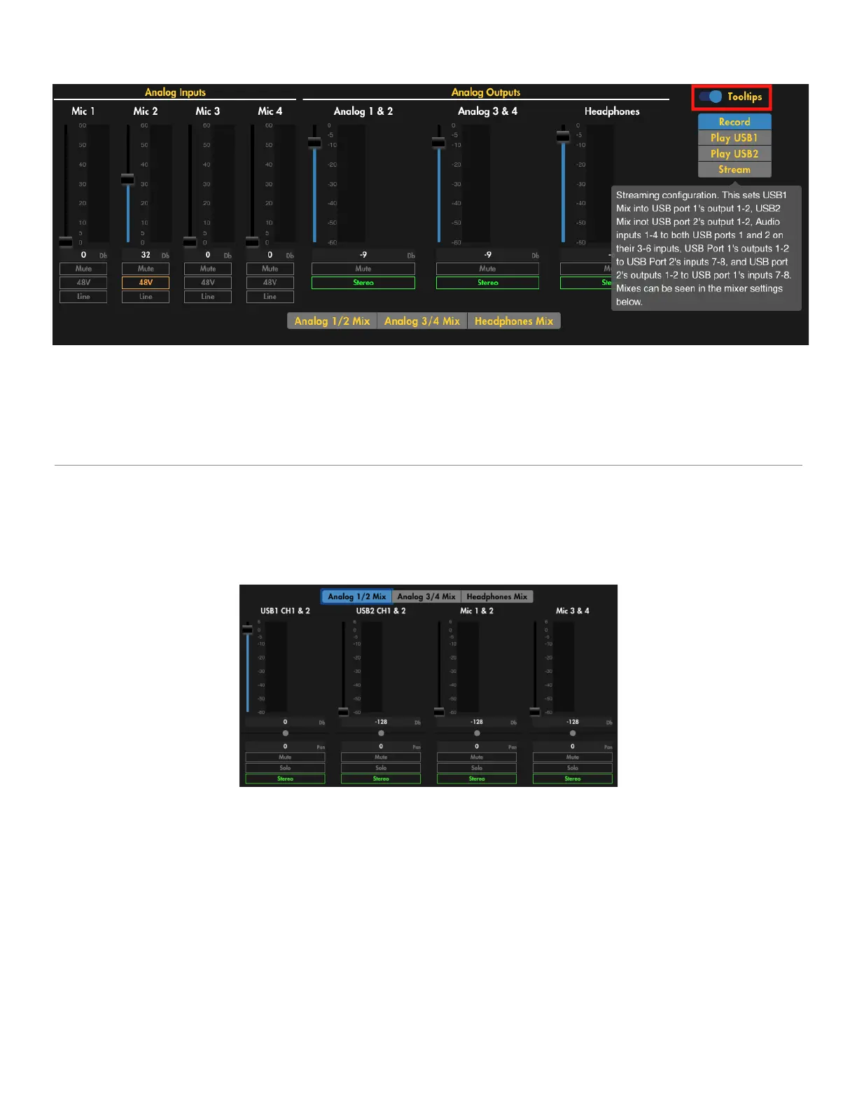 Analog Mix numbers correspond to the ¼” analog output sockets numbered 1-4 on the rear of the