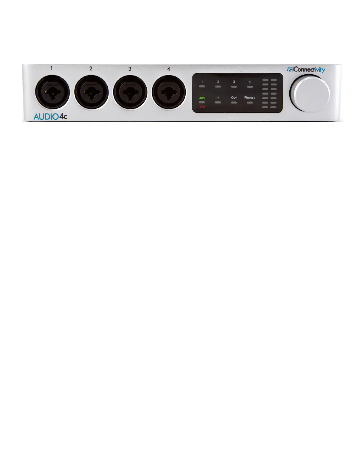 ● 4 premium microphone preamplifiers with +48V phantom power