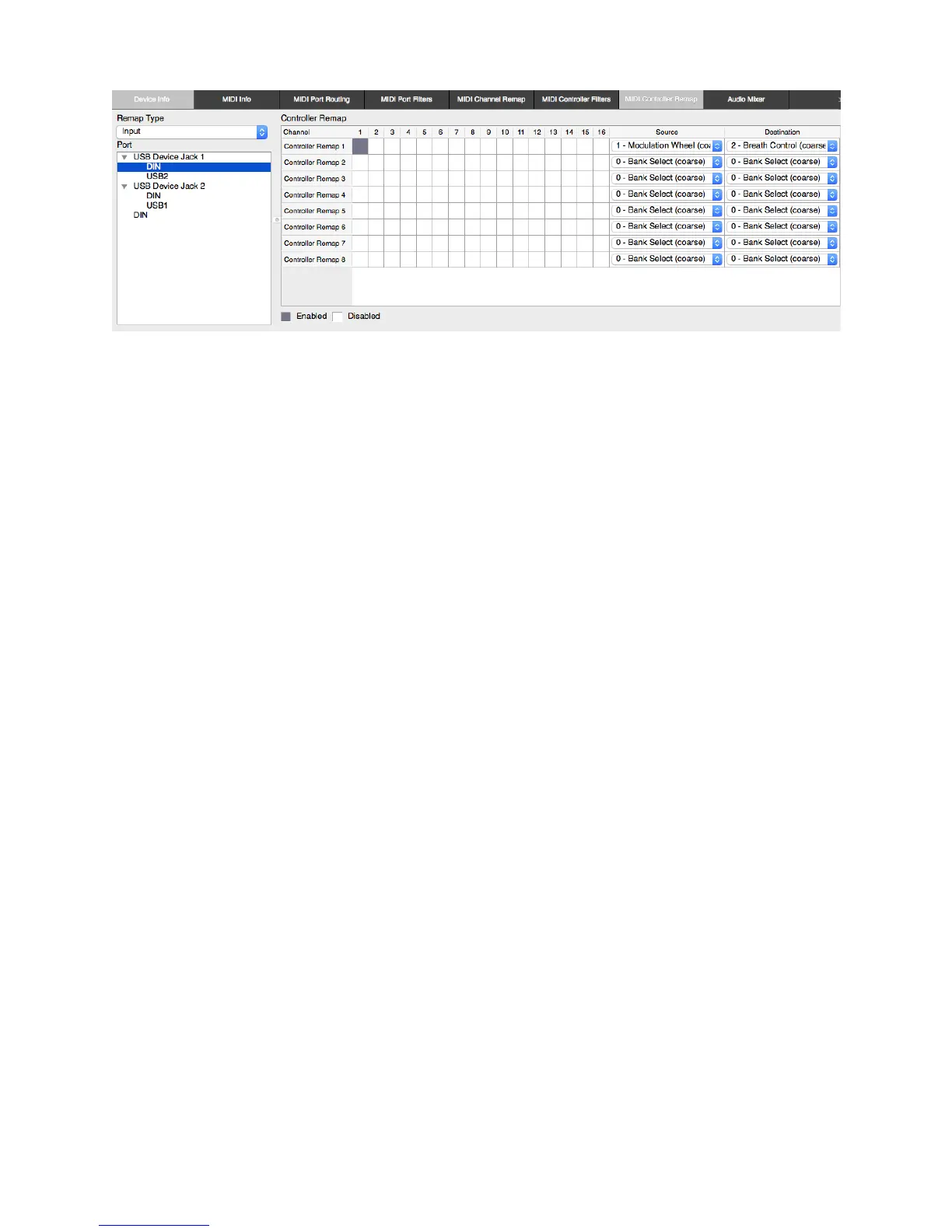For each MIDI port, this matrix is for remapping (converting) any MIDI controller on any