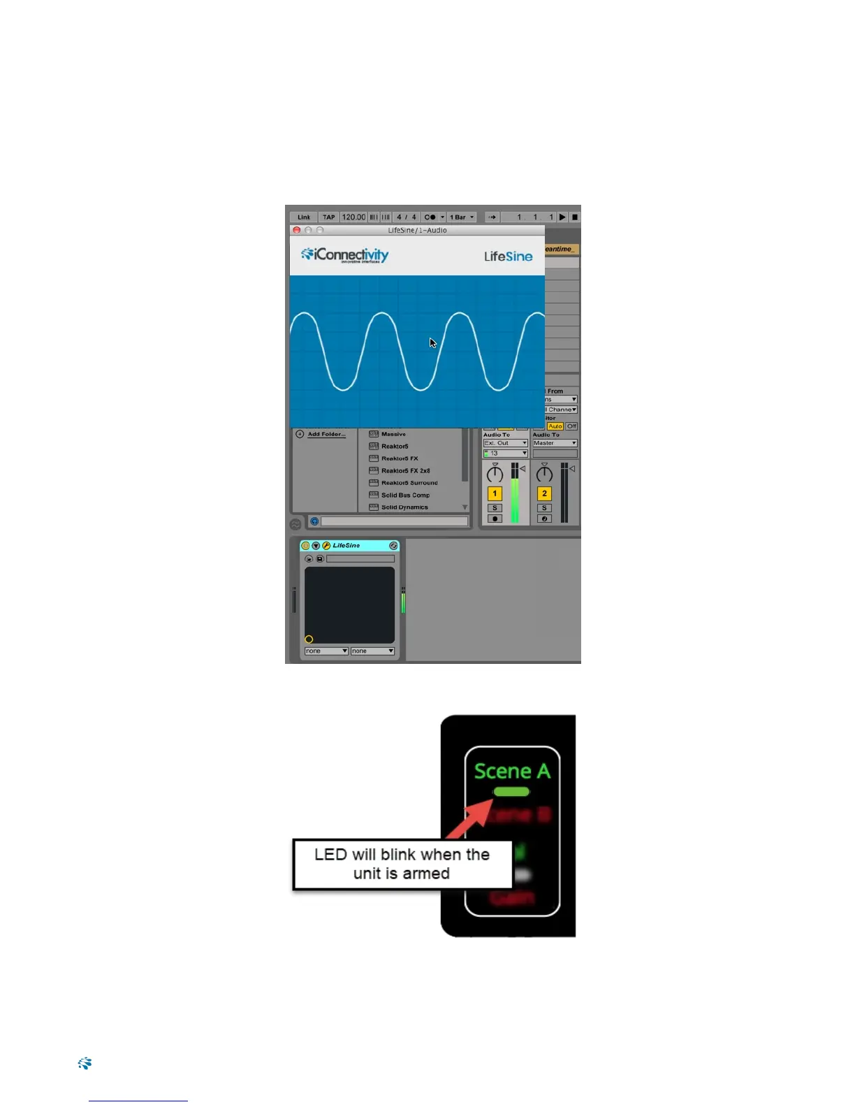 detects the test tone, the green Scene A LEDlight will blink, indicating that the PlayAUDIO12 is