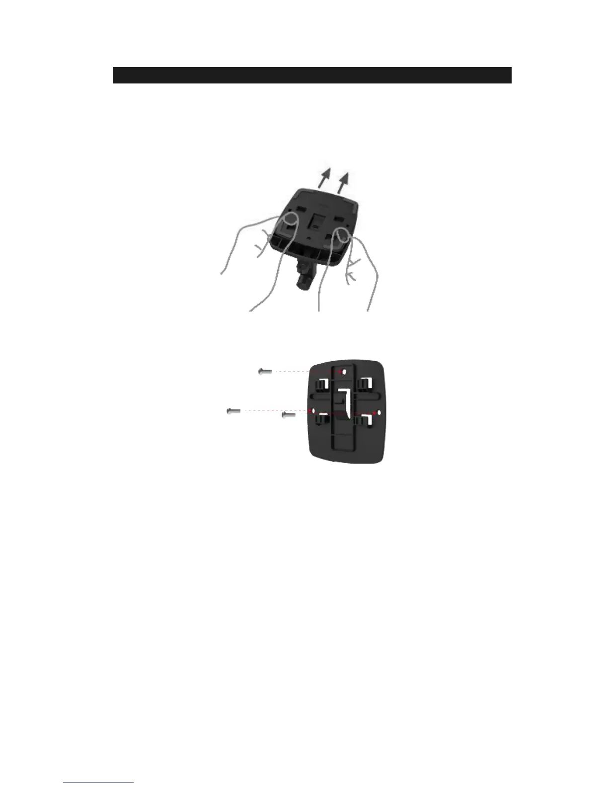 2. Place the plate in the desired position of the wall. Screw three screws into ceiling through