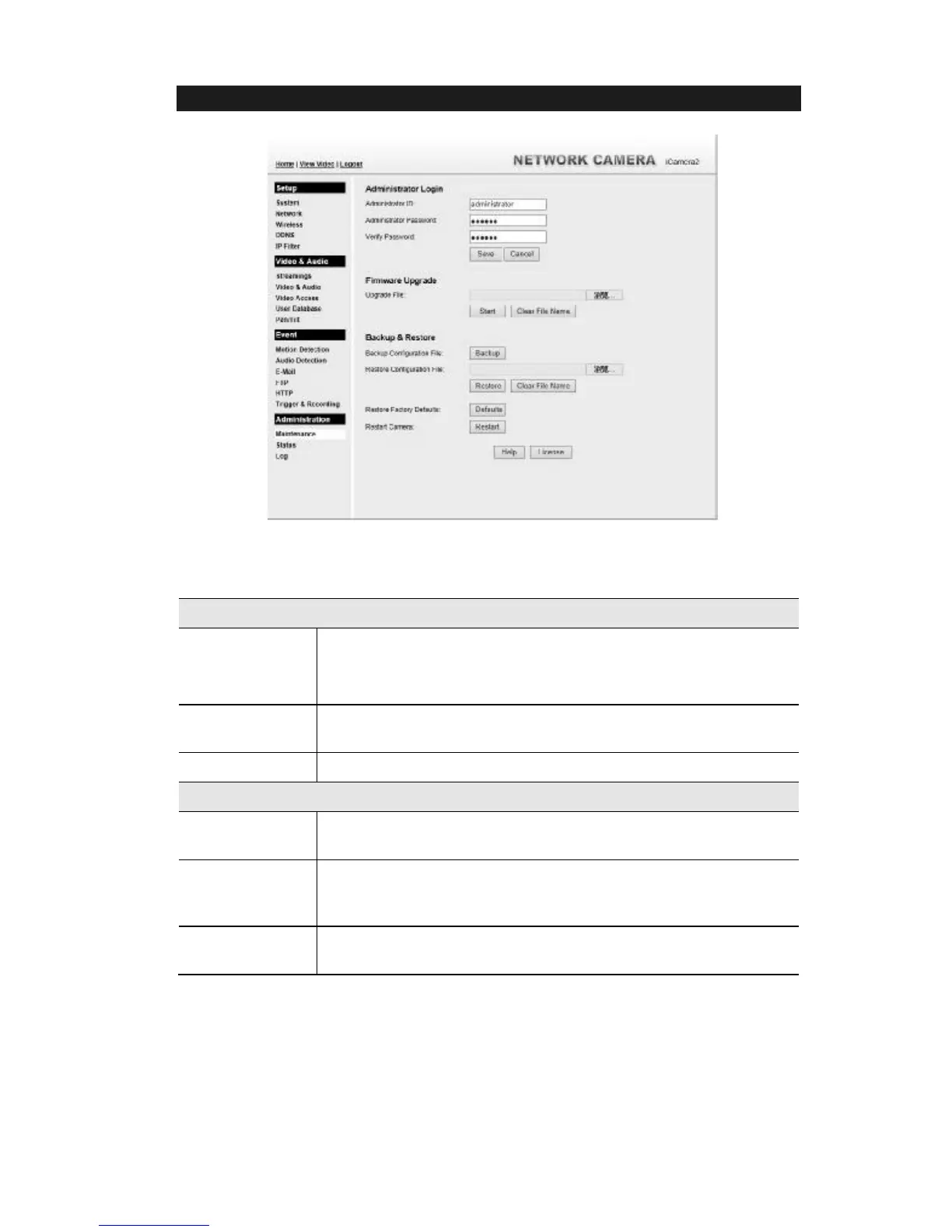 Figure 32: Maintenance Screen