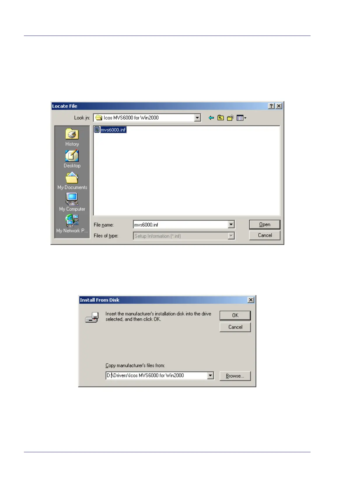 Note: The folder that contains the mvs6000.inf file is stored on the ICOS Installation CD that
