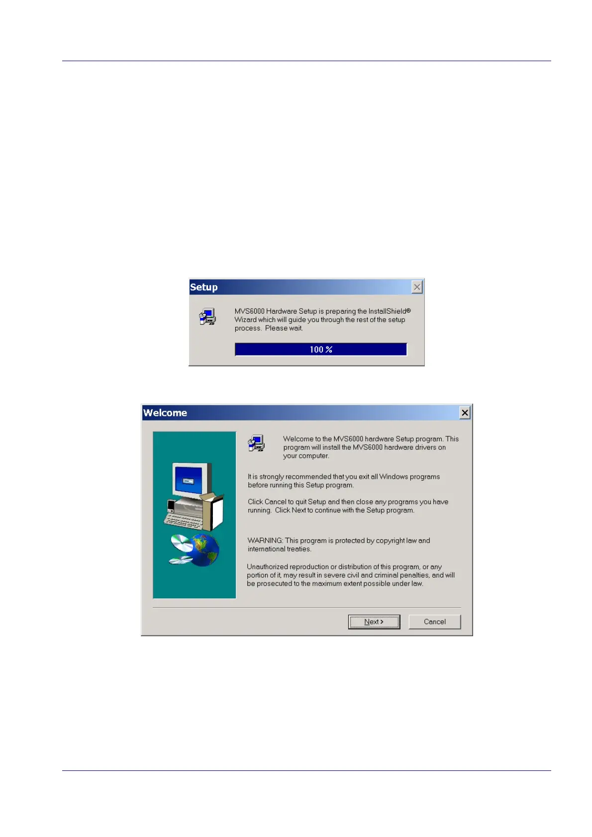 The MVS6000 hardware Setup wizard starts:
