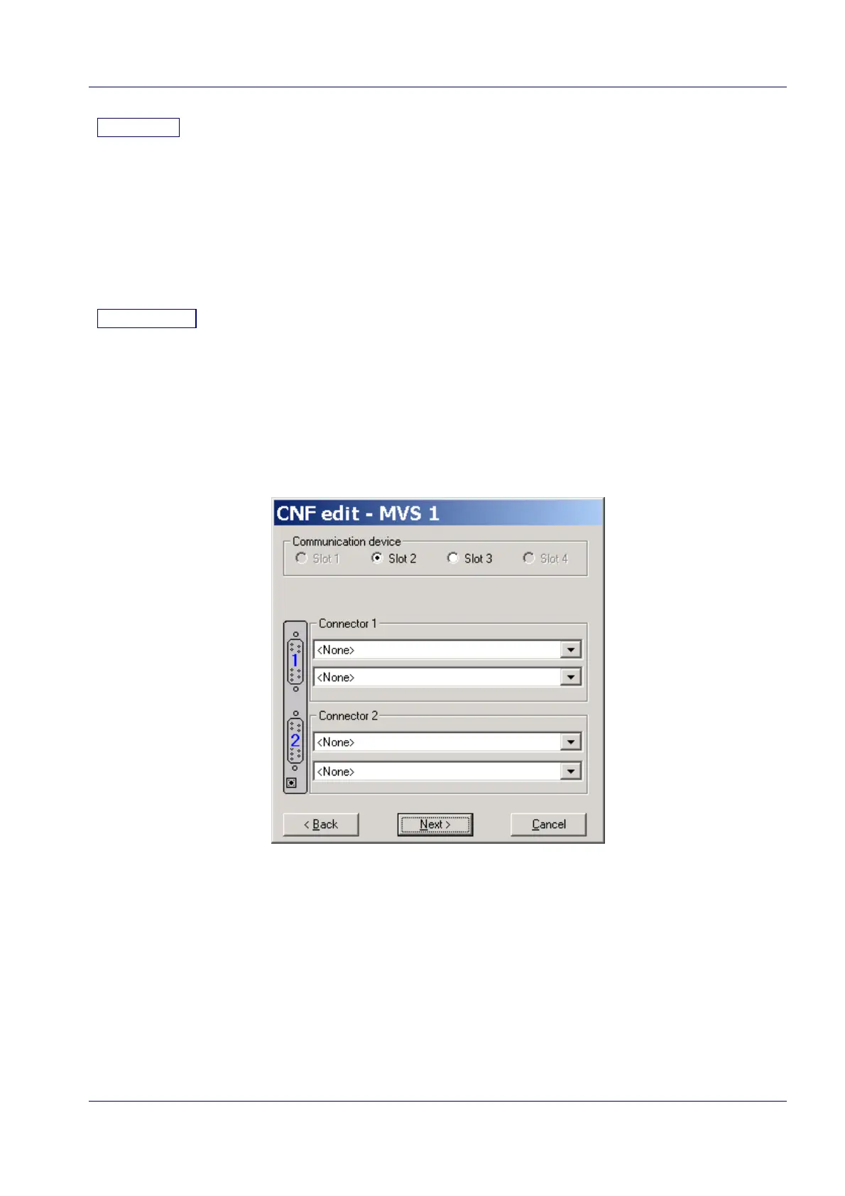 In this dialog box, you specify the relation between the physical boards and the MVS1, MVS2,