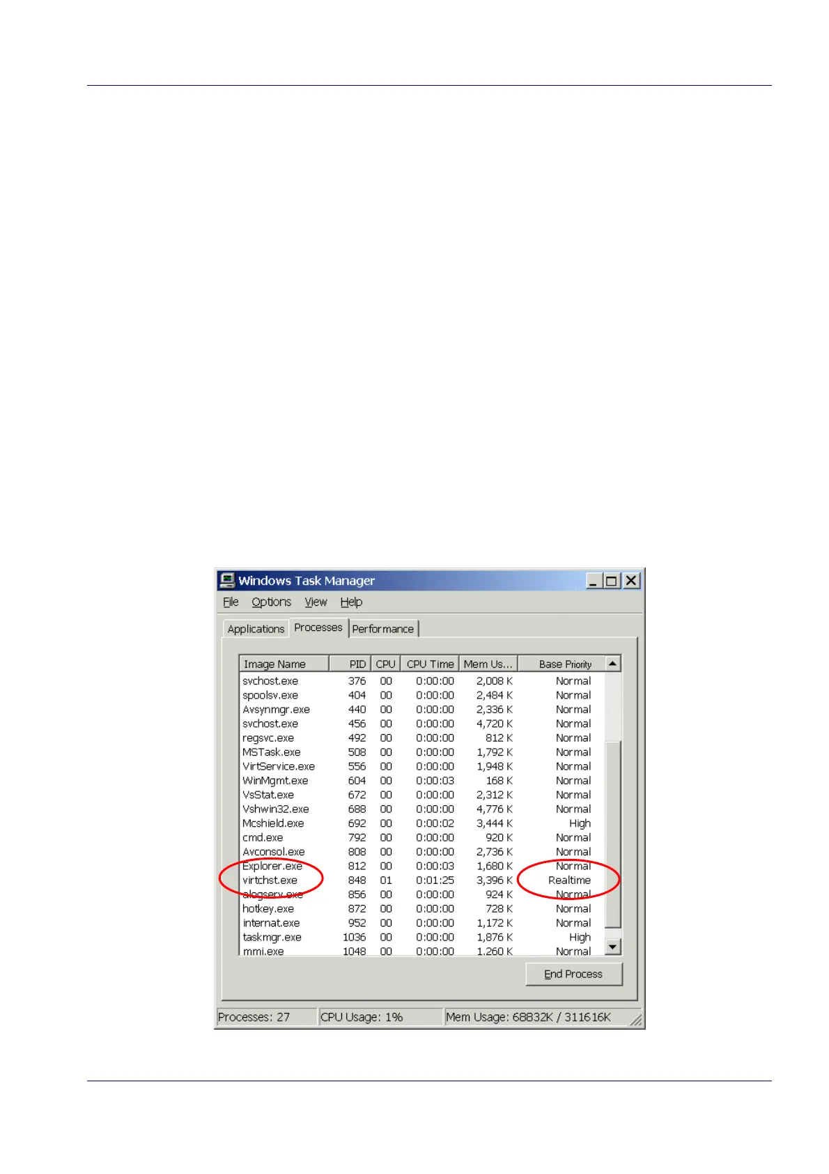 7. Look for Virtchst.exe in the list and check if you find Realtime in the Base Priority column.