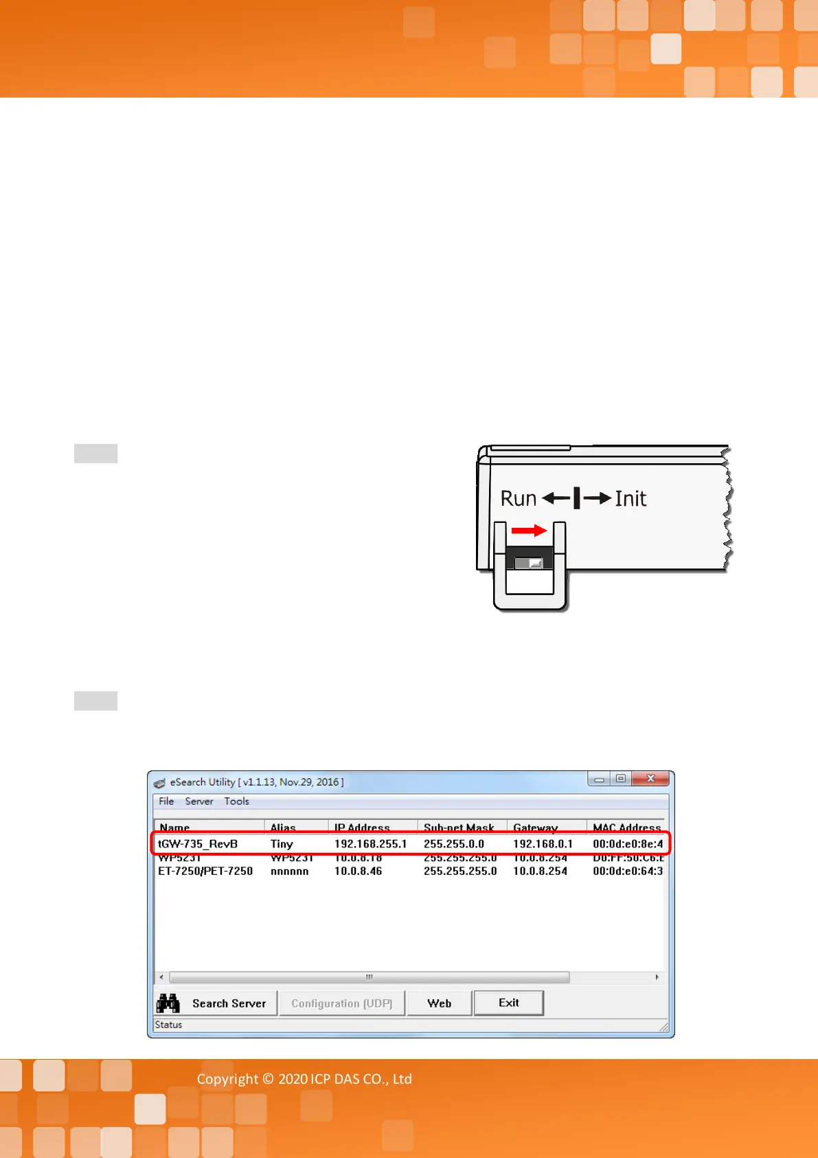 Step 2 Execute the eSearch Utility to search for any tGW-700/GW-2200 modules connected to the
