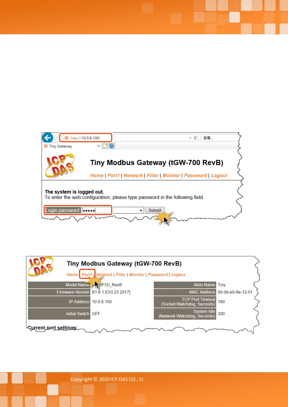for the tGW-700/GW-2200 module in the address bar of the browser, or click the “Web” button