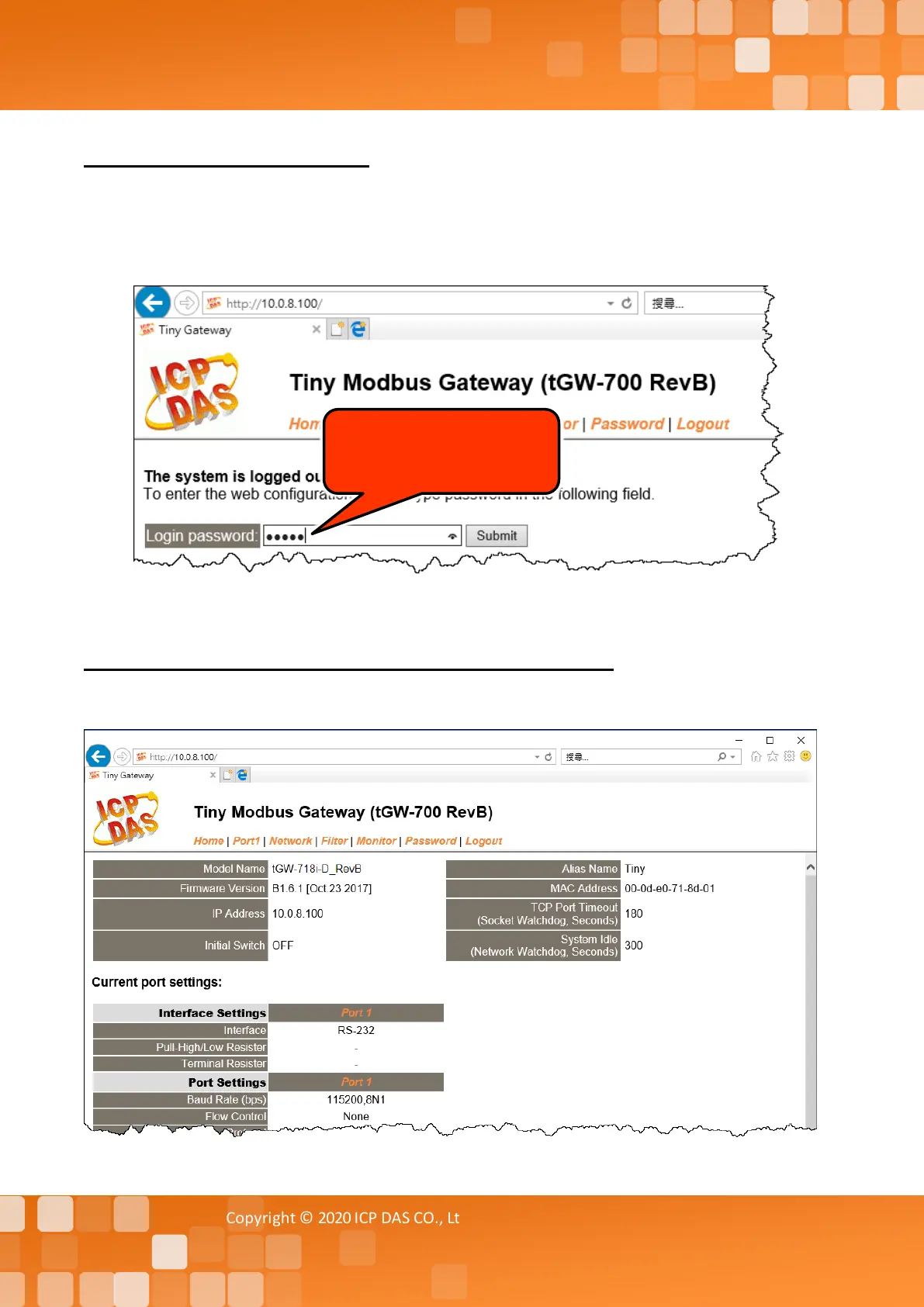 Step 4: Log in to the tGW-700/GW-2200 Web Server