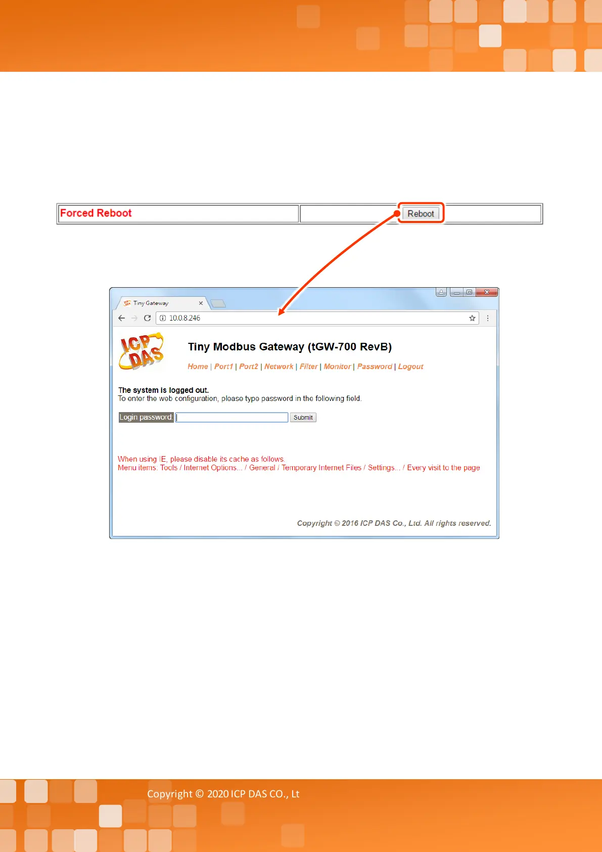 reboot the device. After the tGW-700/GW-2200 module has rebooted, the original login screen will