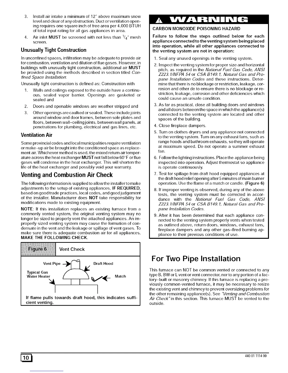 Air Check"in this section. This furnace MUST be vented to the
