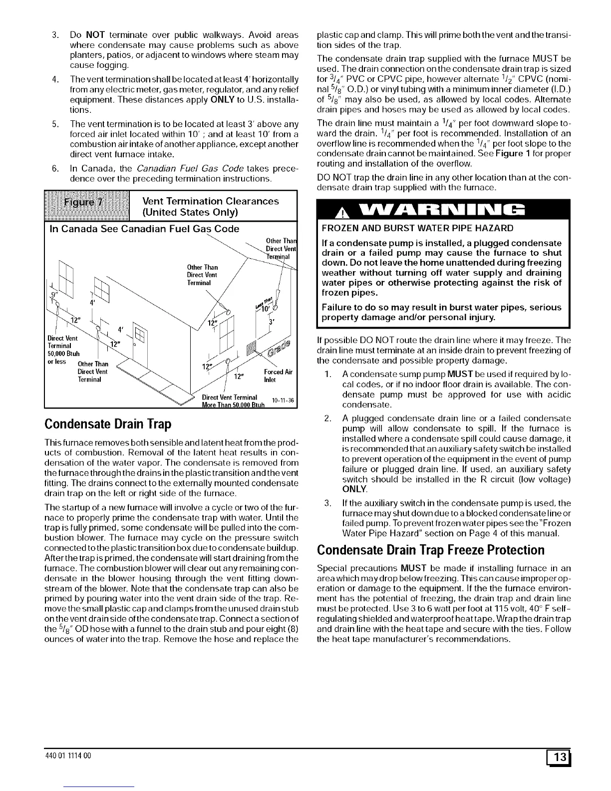 The condensate drain trap supplied with the furnace MUST be