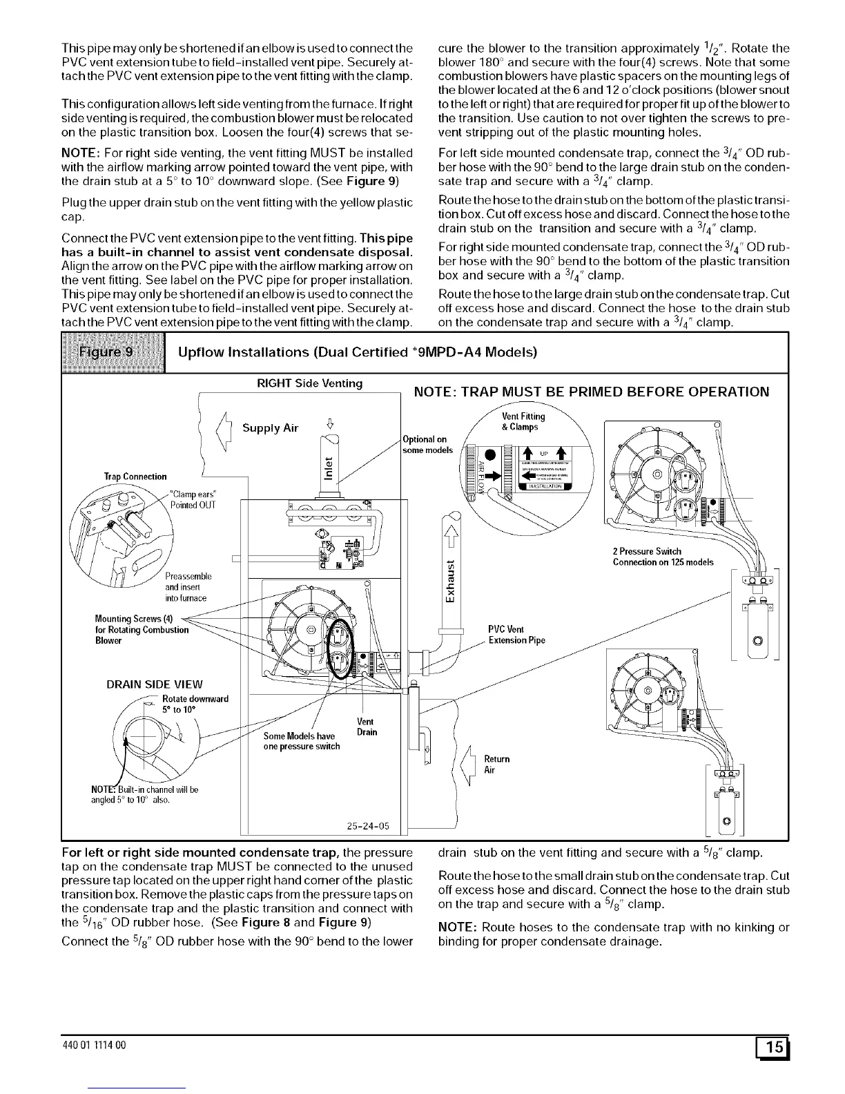 For right side mounted condensate trap, connect the 3/4" OD rub-