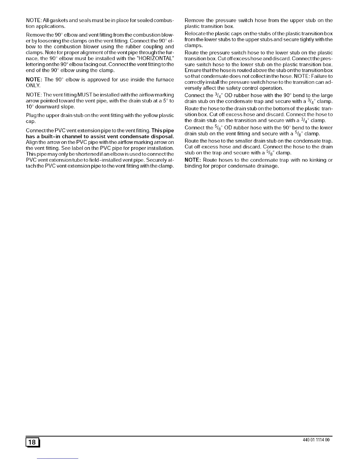 sothat condensate does not collect in the hose. NOTE: Failure to