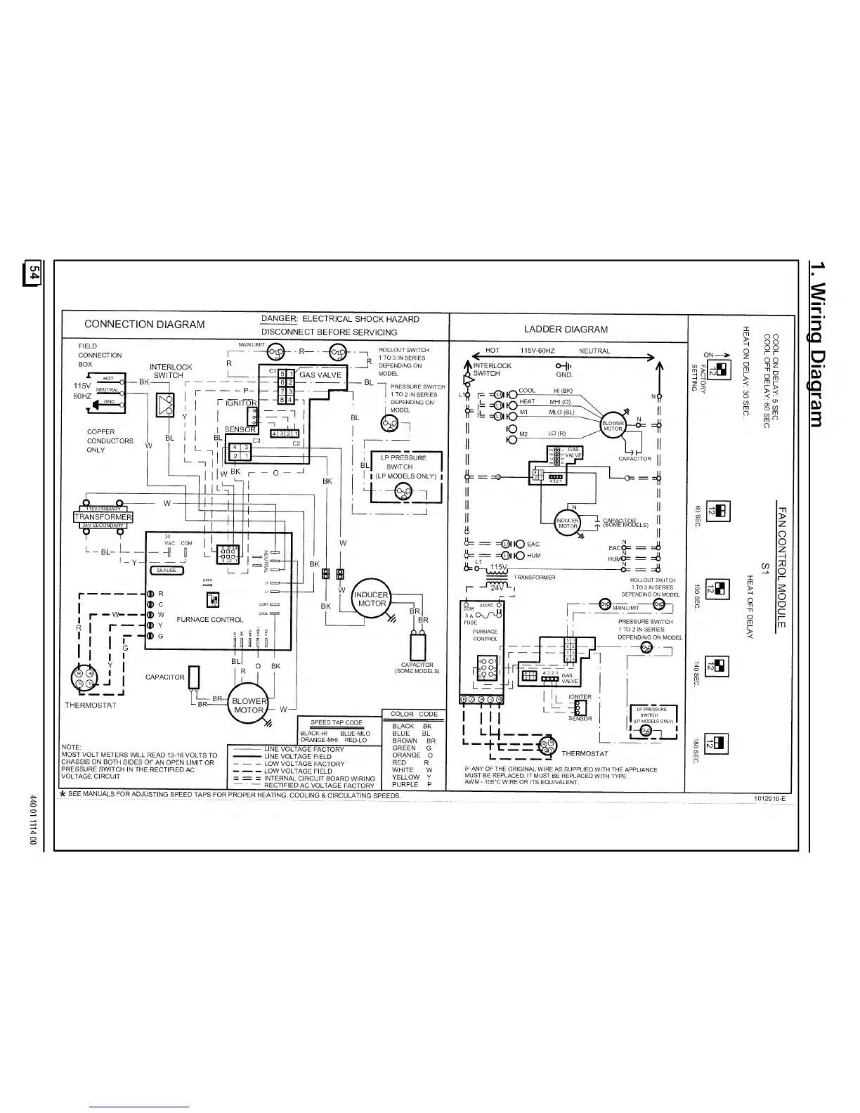 SEE MANUALS FOR ADJUSTING SPEED TAPS FOR PROPER HEATING, COOLING & CIRCULATING SPEEDS.
