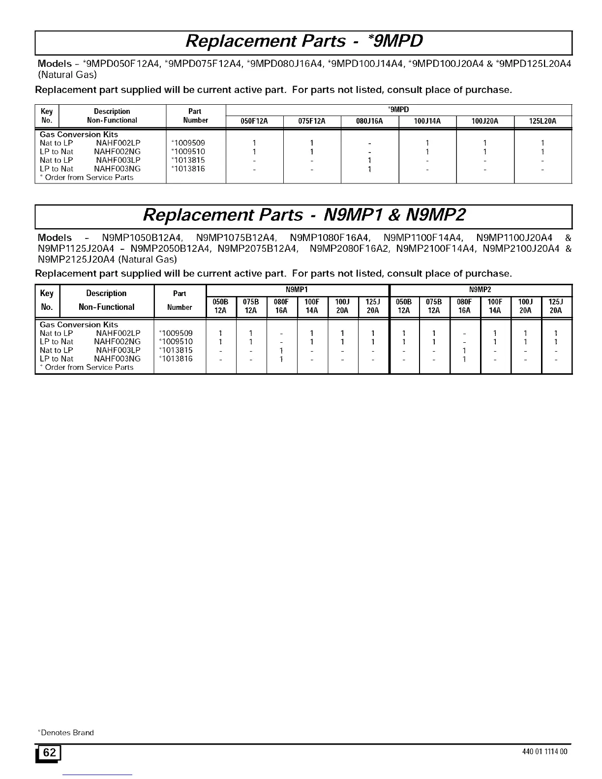 Models - N9MP1050B12A4, N9MP1075B12A4, N9MP1080F16A4, N9MP1100F14A4, N9MP1100J20A4 &