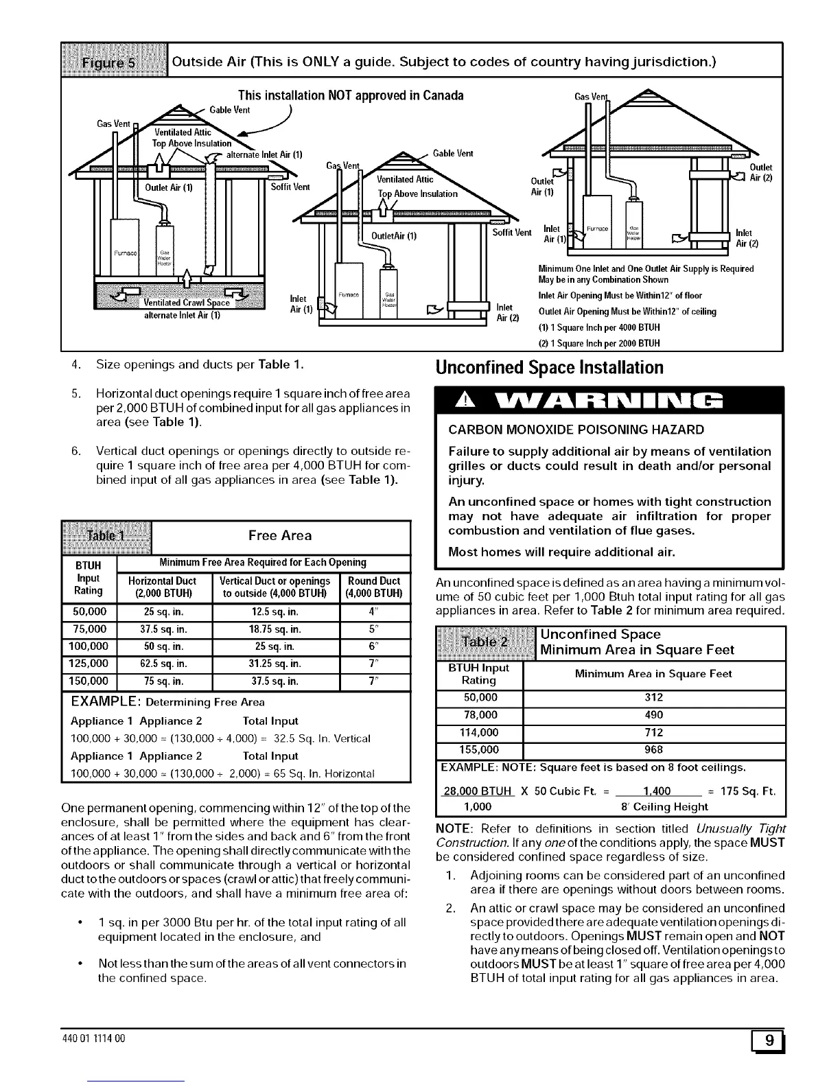 appliances in area. Refer to Table 2 for minimum area required.