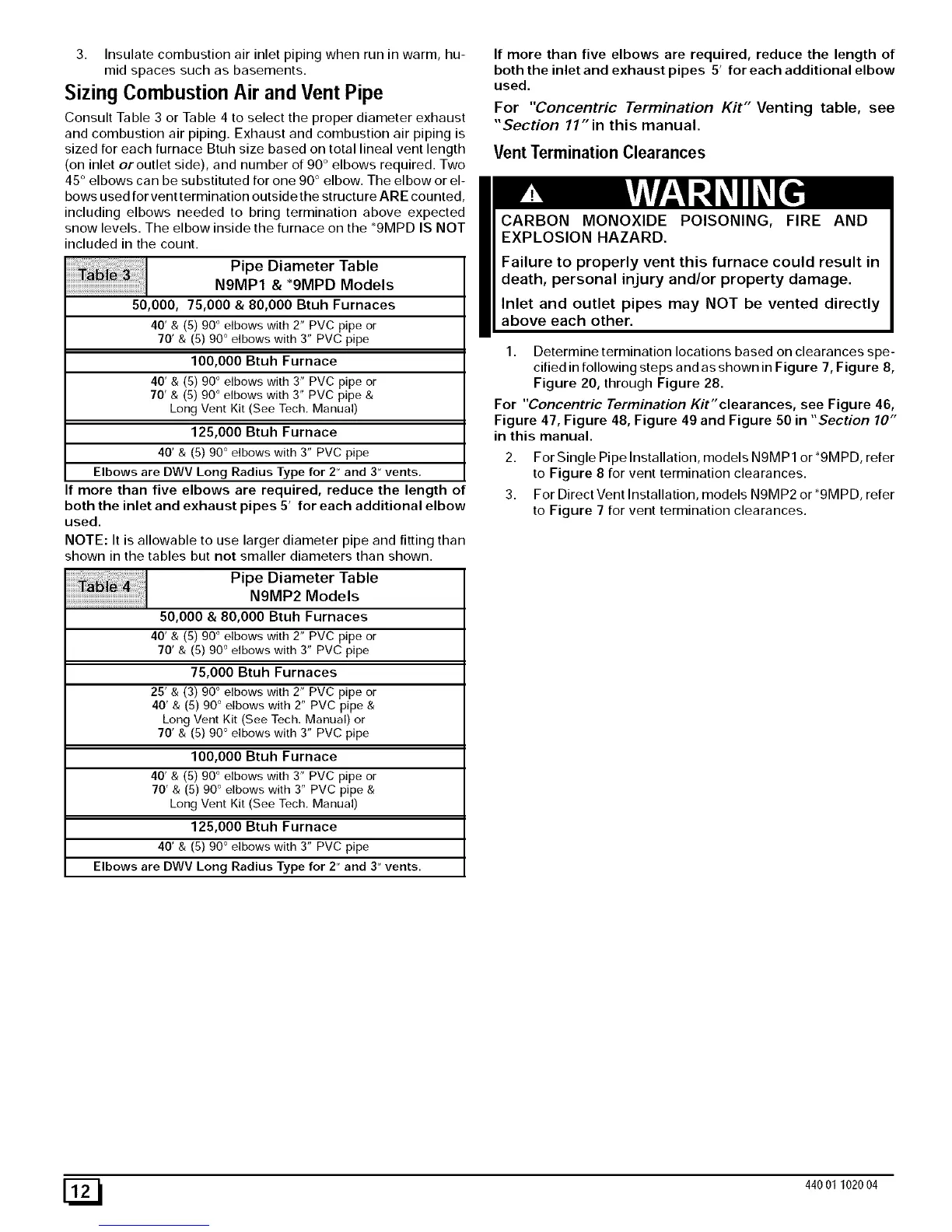 3. For Direct Vent Installation, models N9MP2 or*9MPD, refer