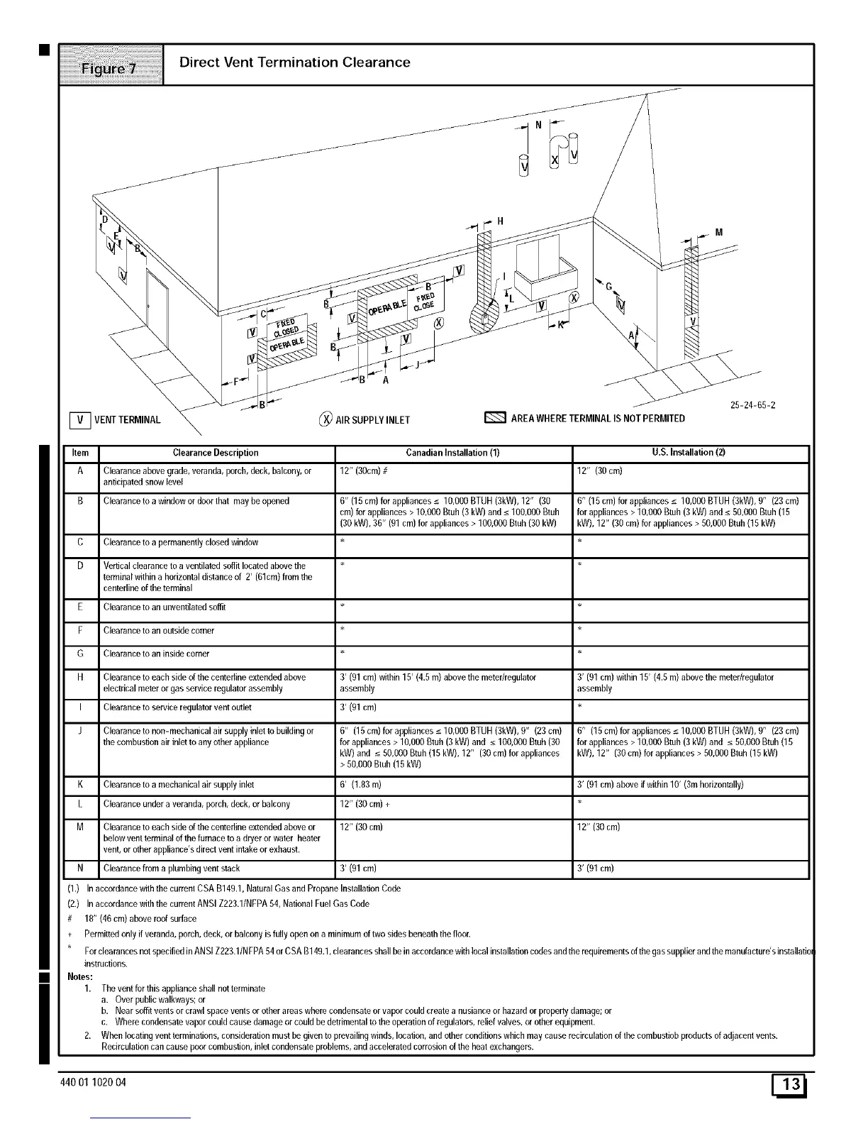 For clearances not specified in AN SI Z223.1/N FPA 54 or C SA B149.1, clearances shall be in accordance with local installation codes and the requirements ofthe gas supplier and the manufactare's installatio