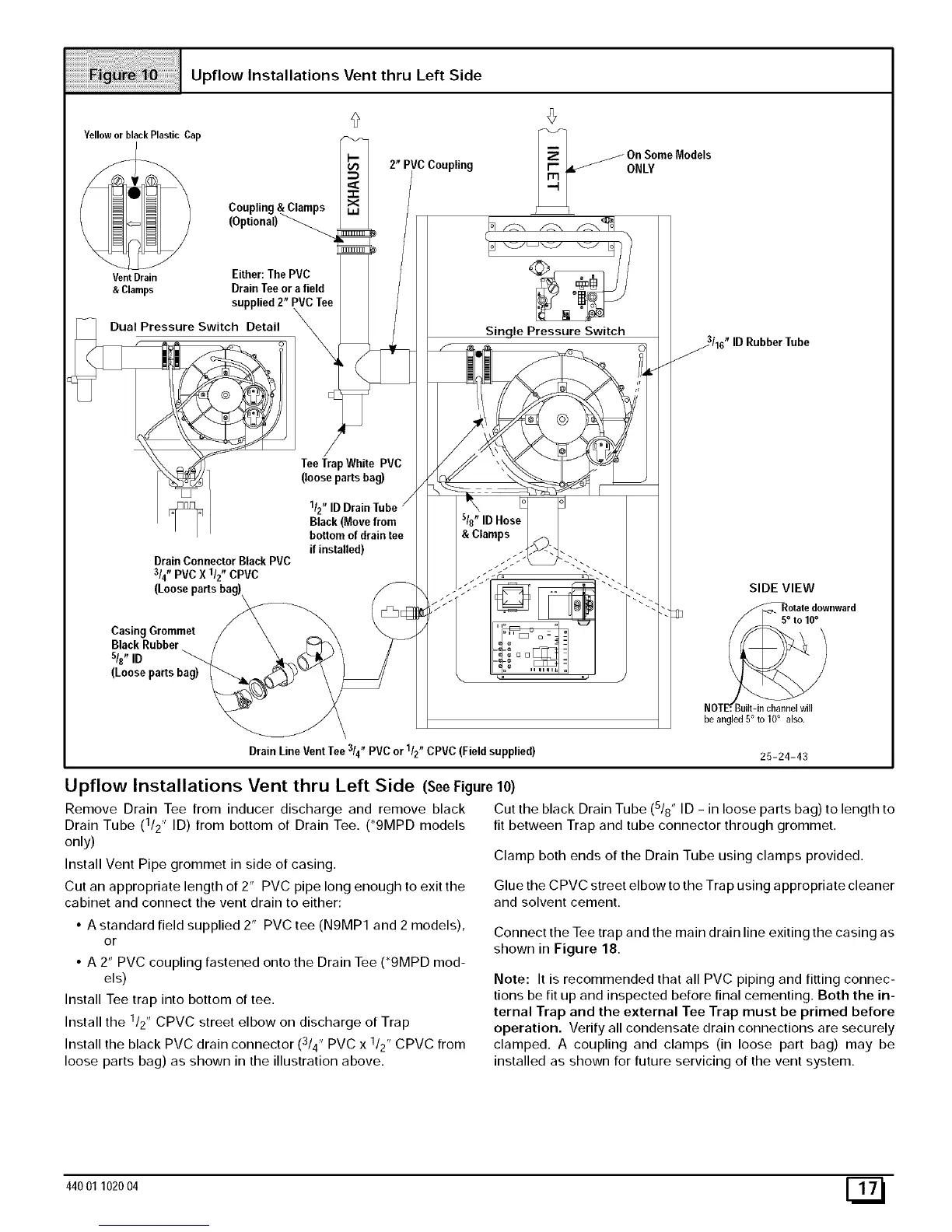 Upflow Installations Vent thru Left Side (See Figure 10)