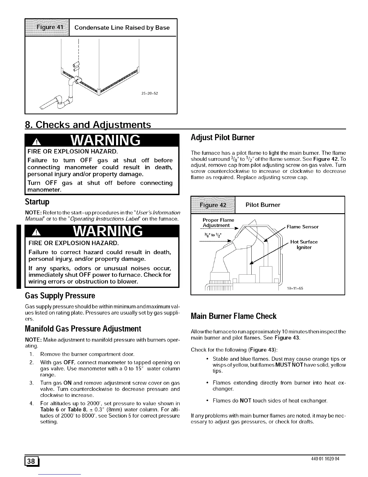 main burner and pilot flames. See Figure 43.