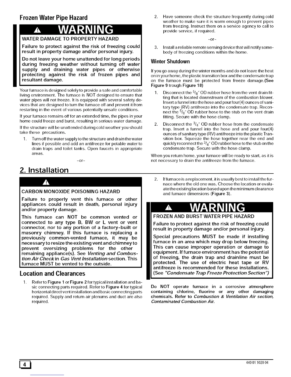on the furnace must be protected from freeze damage.(See