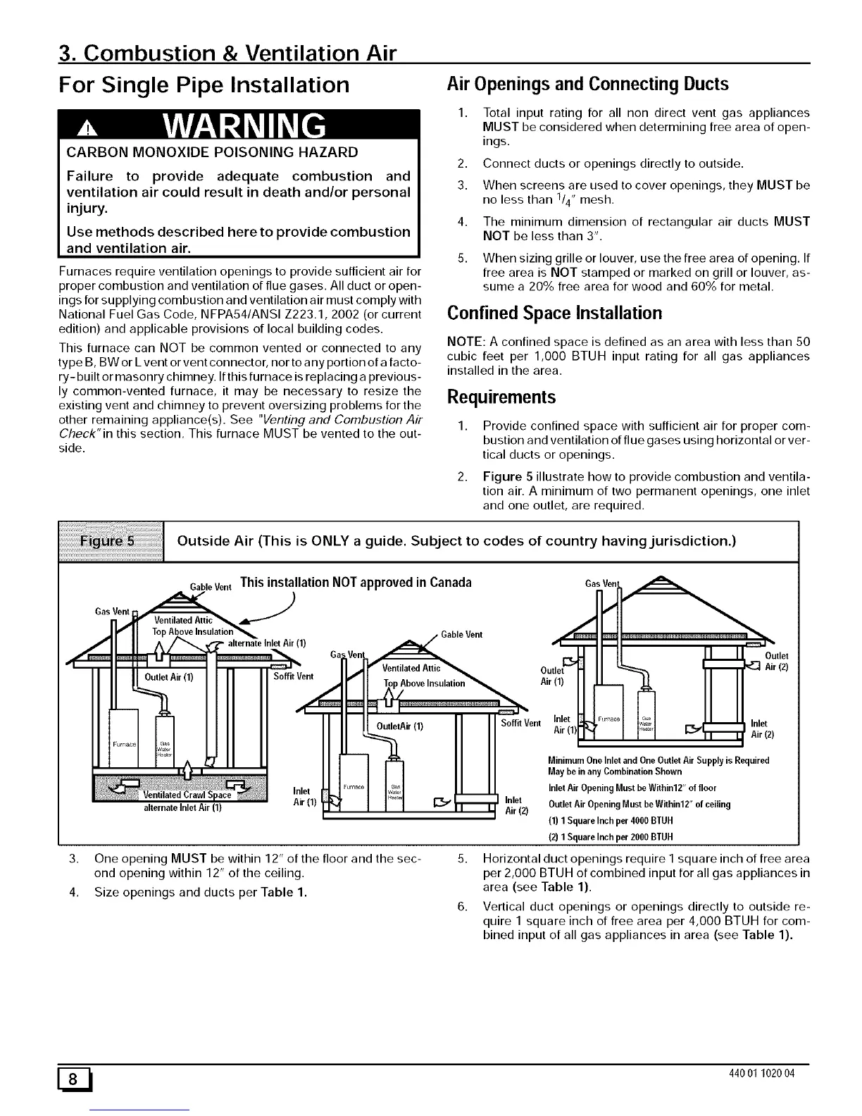 quire 1 square inch of free area per 4,000 BTUH for com-
