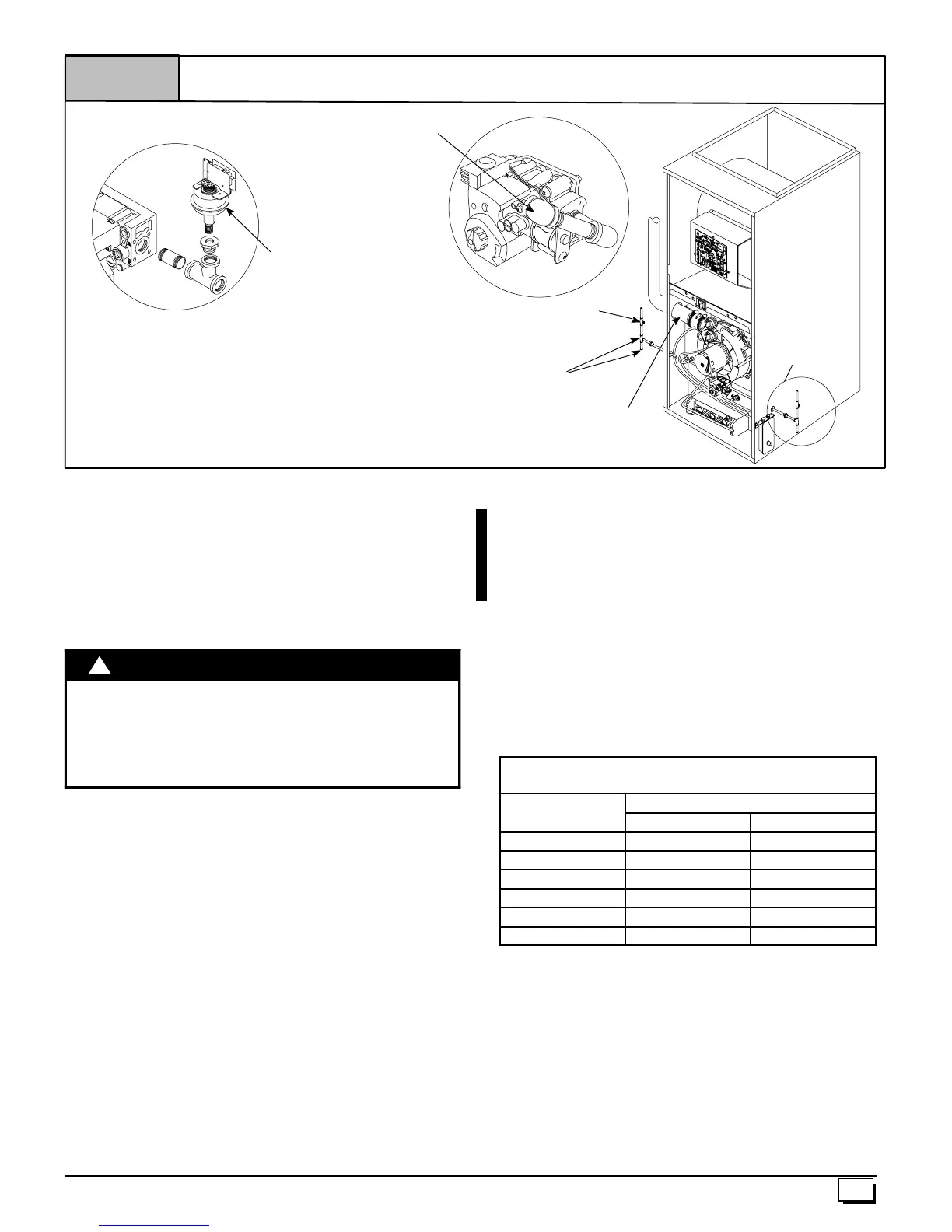 Table 6 or Table 7 for normal gas supply and manifold pres-