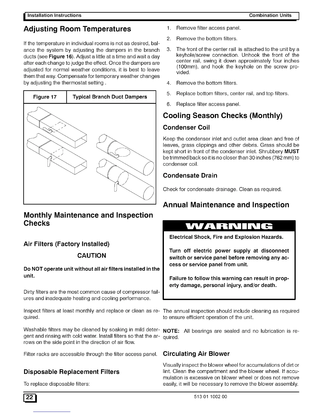 Inspect filters at least monthly and replace or clean as re- The annual inspection should include cleaning as required