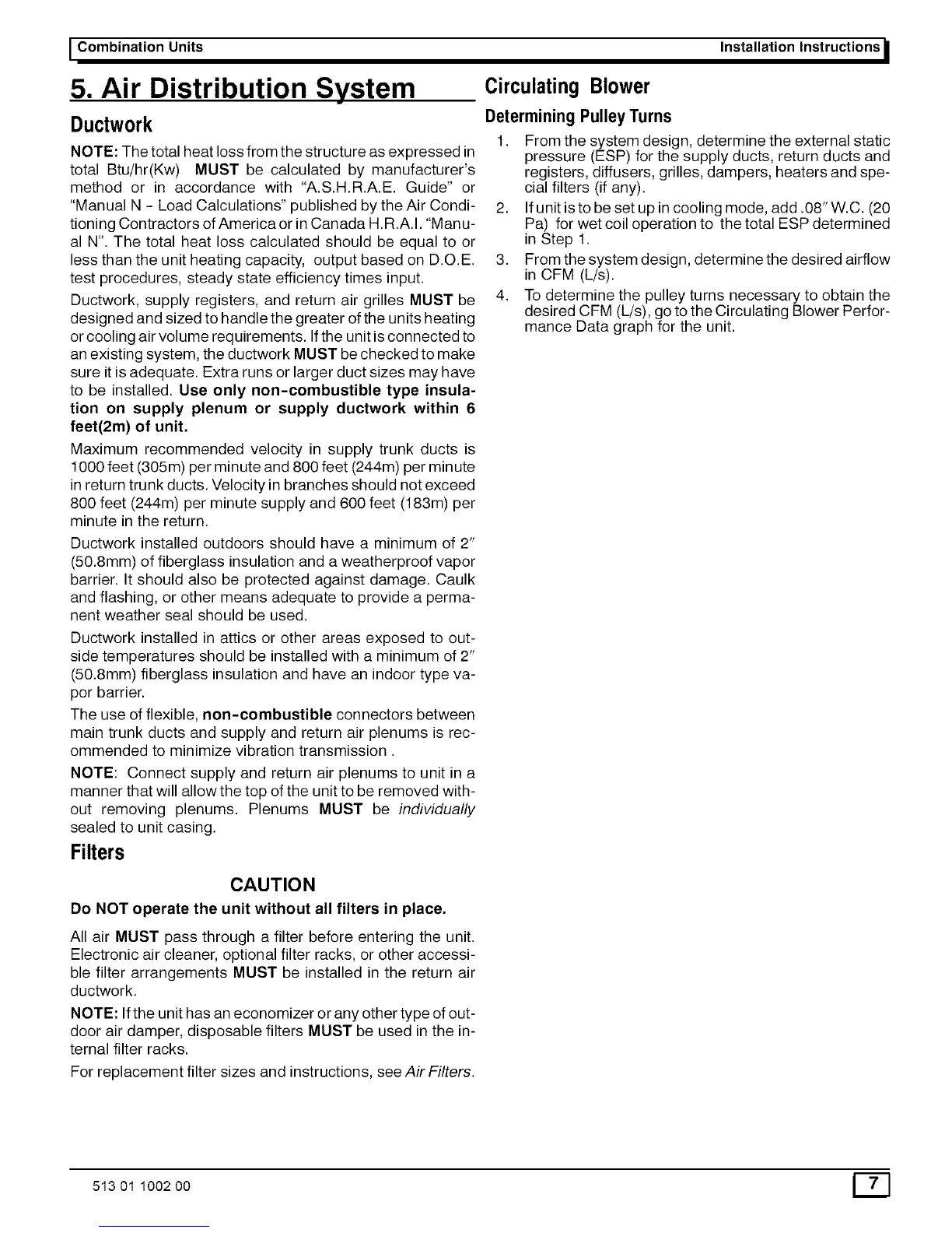 ble filter arrangements MUST be installed in the return air