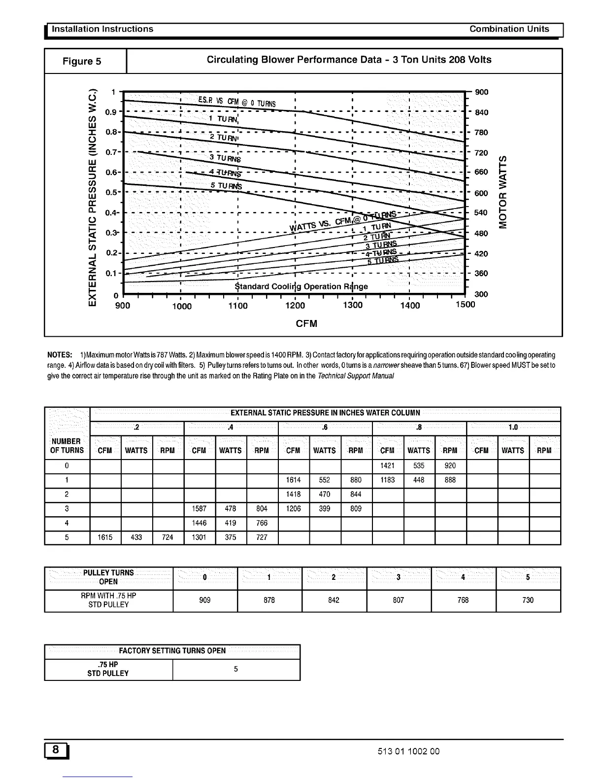 NOTES: 1)MaximummotorWattsis787Watts.2)Maximumblowerspeedist400RPM. 3)__ntactfact_ryf_rapp_icati_nsrequiring_perati_n_utsidesta_dardco__ing_perating