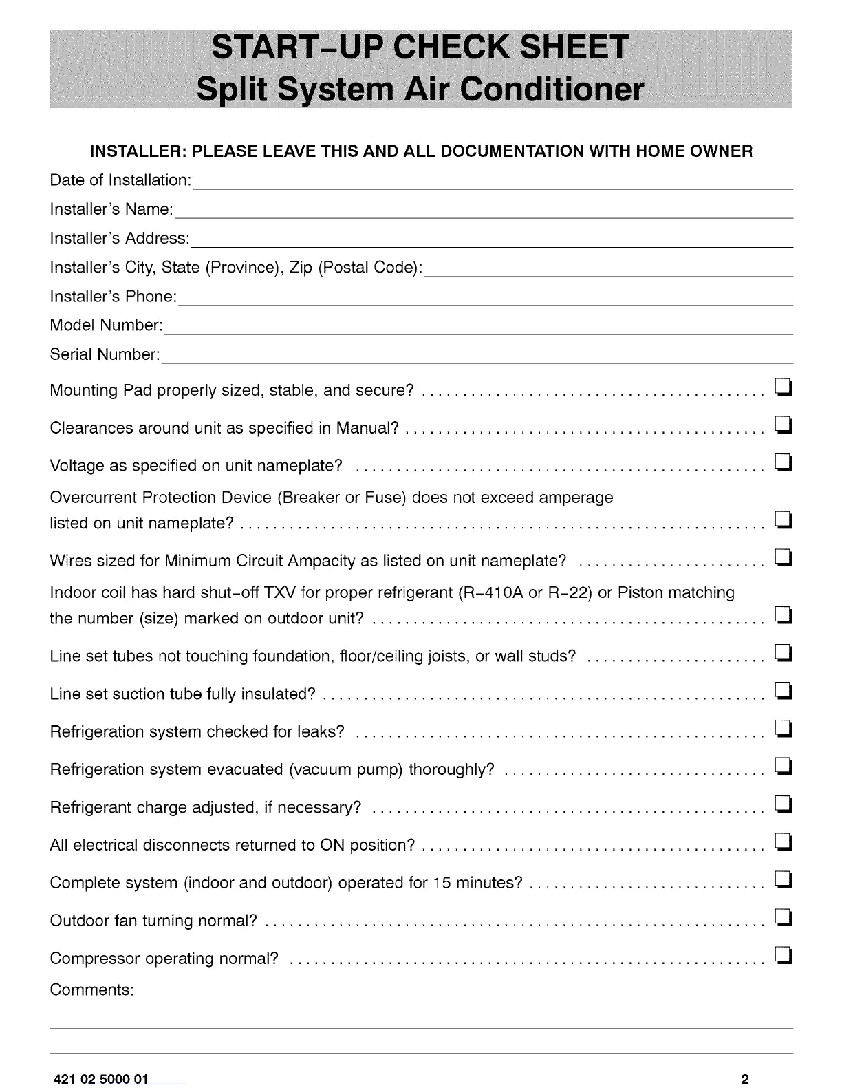 Complete system (indoor and outdoor) operated for 15 minutes? .............................