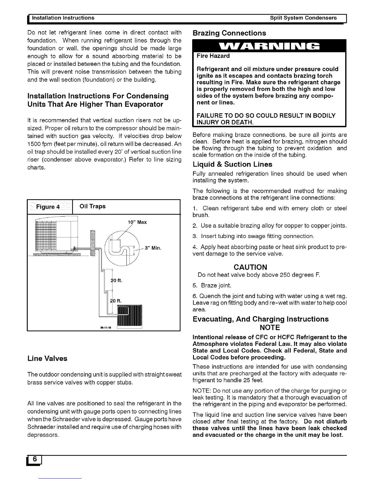 riser (condenser above evaporator,) Refer to line sizing