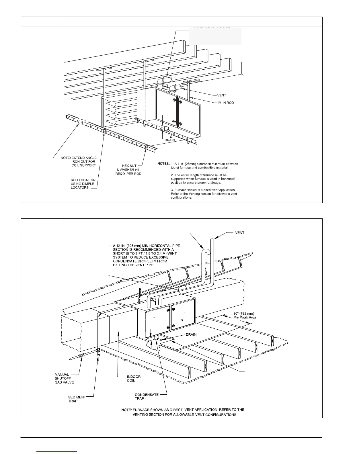 NOTE: Local codes may require a drain pan and condensate trap when a condensing furnace is installed over a finished