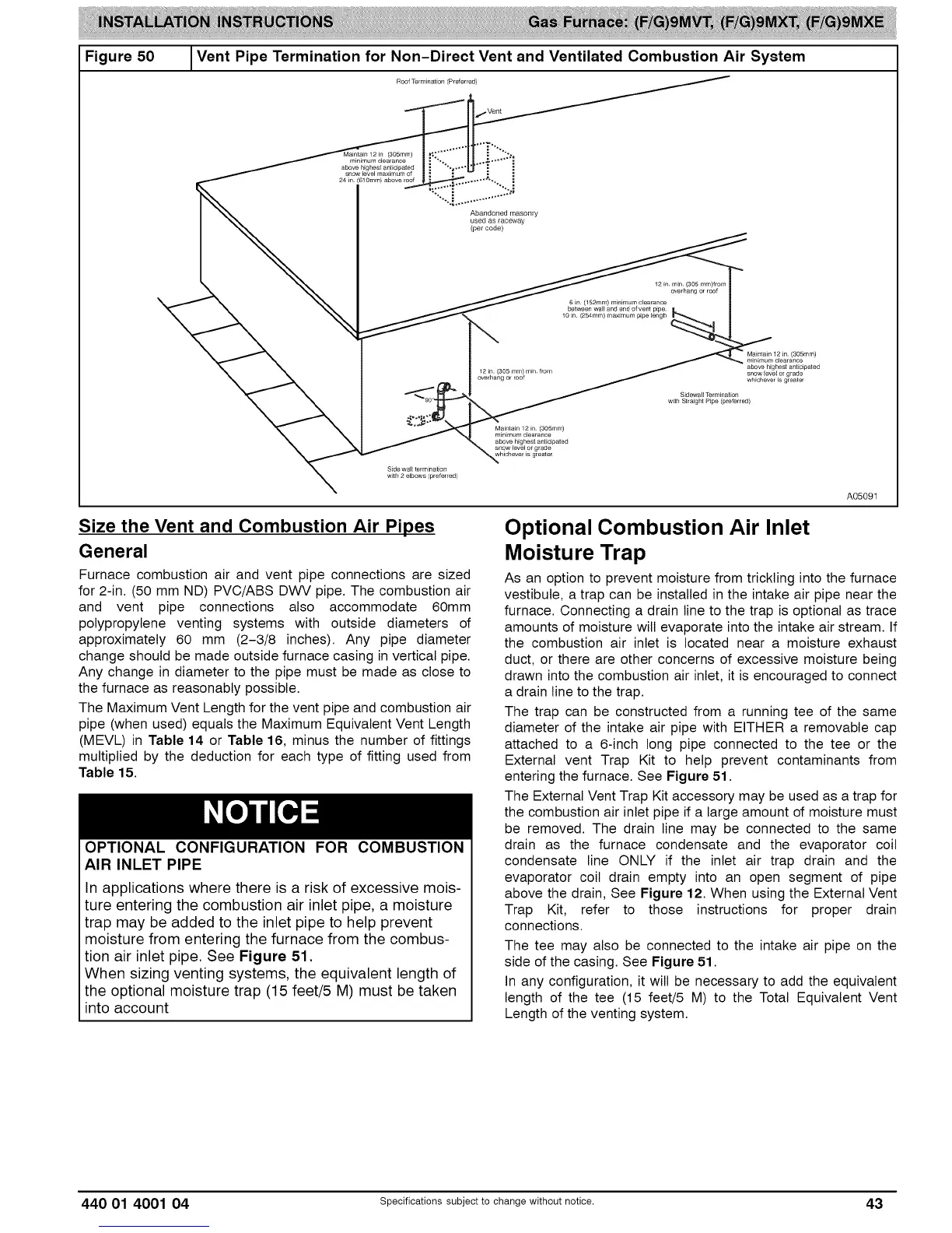 Figure 50 _Vent Pipe Termination for Non-Direct Vent and Ventilated Combustion Air System