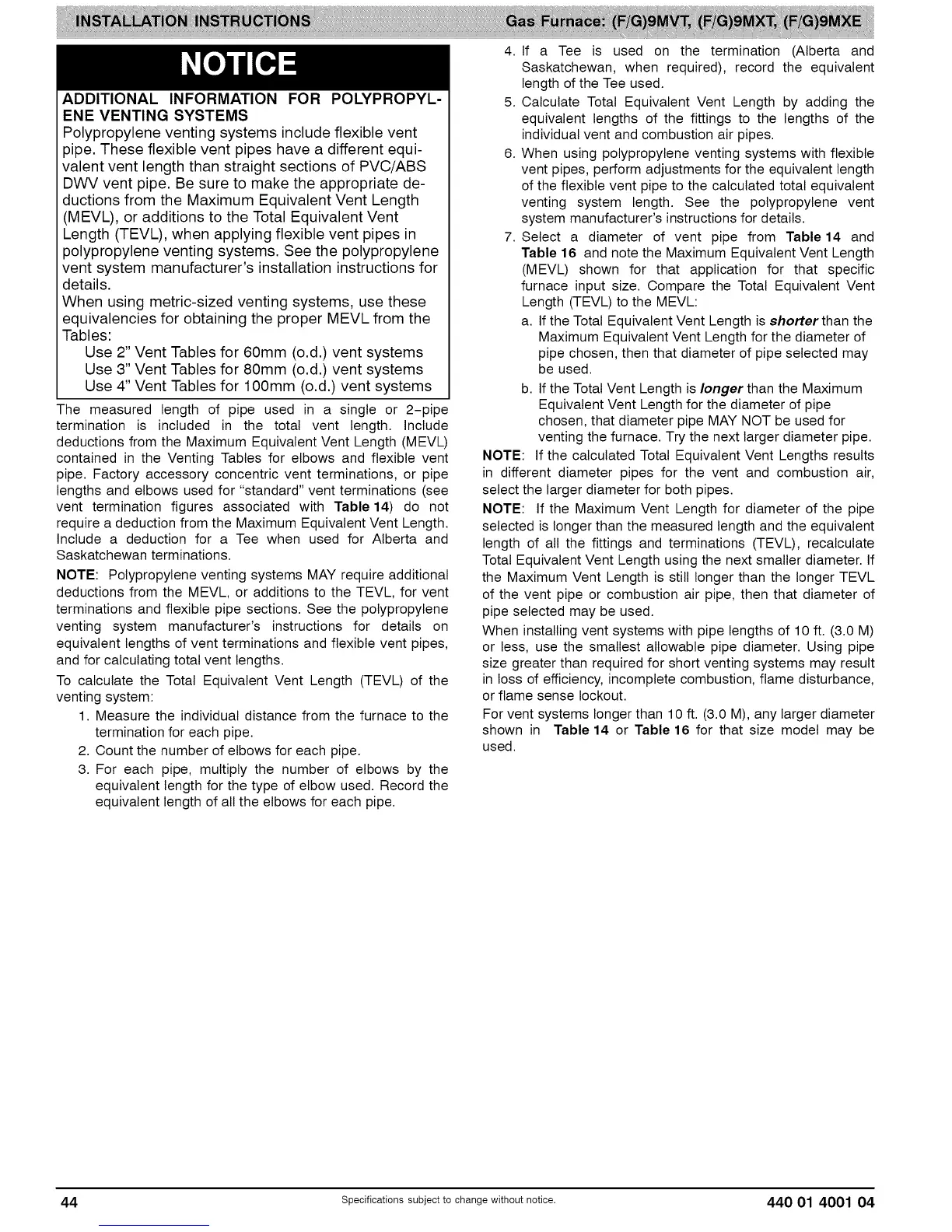 venting system length. See the polypropylene vent