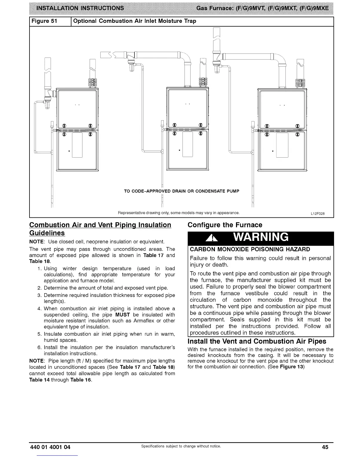 5. Insulate combustion air inlet piping when run in warm,