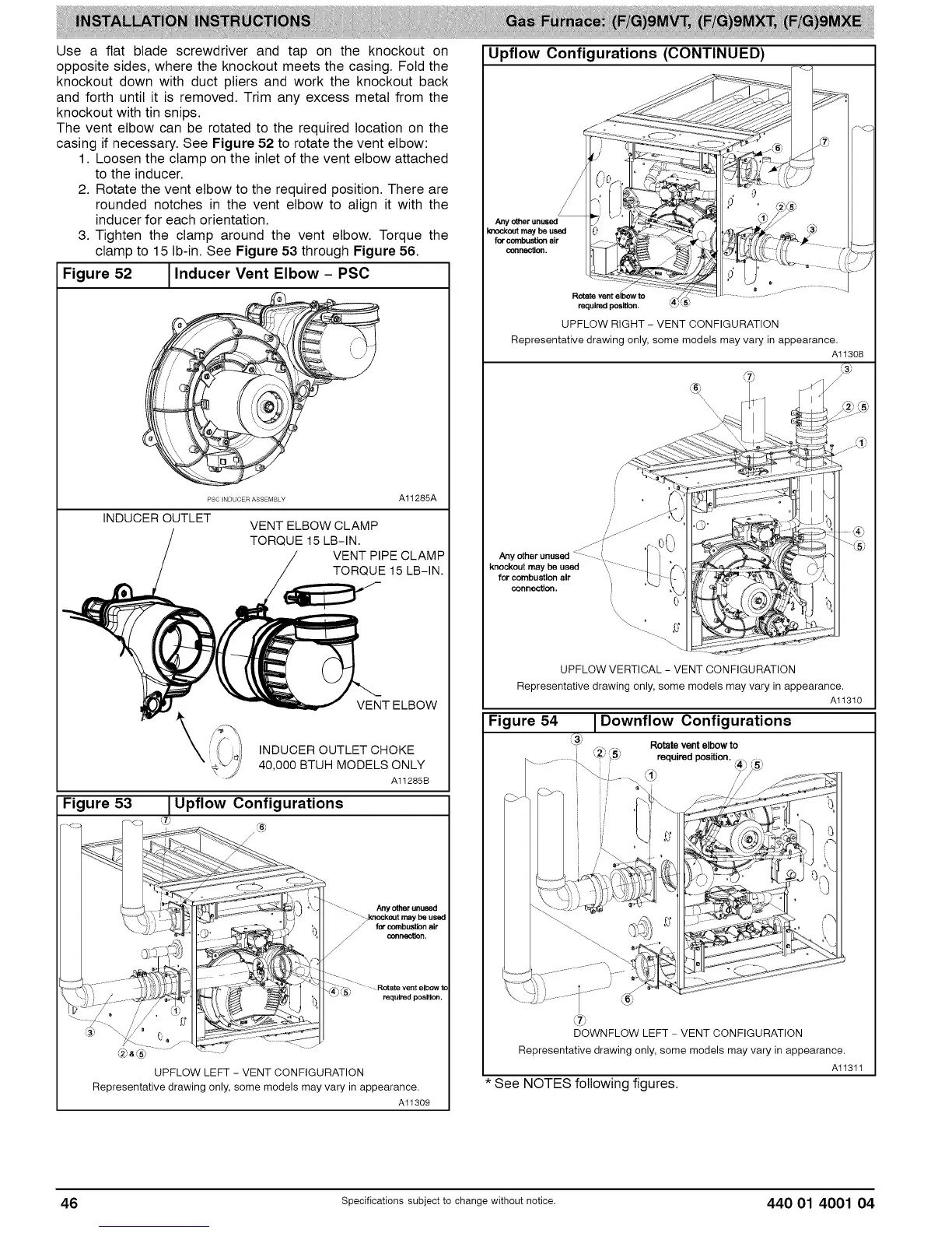 casing if necessary. See Figure 52 to rotate the vent elbow: